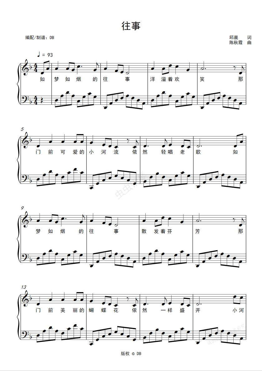 钢琴谱:往事