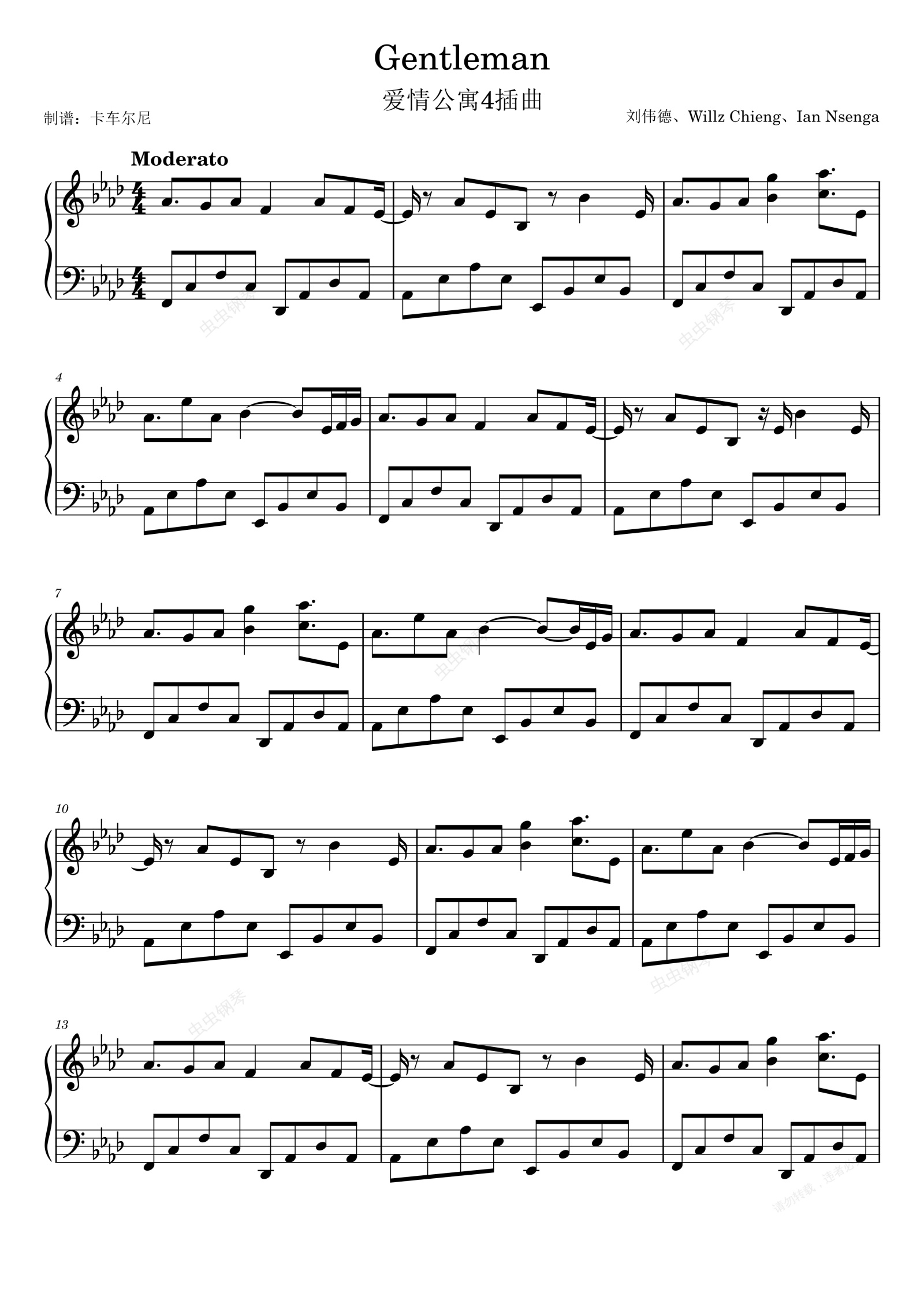 钢琴谱:Gentleman 电视剧,爱情公寓4插曲