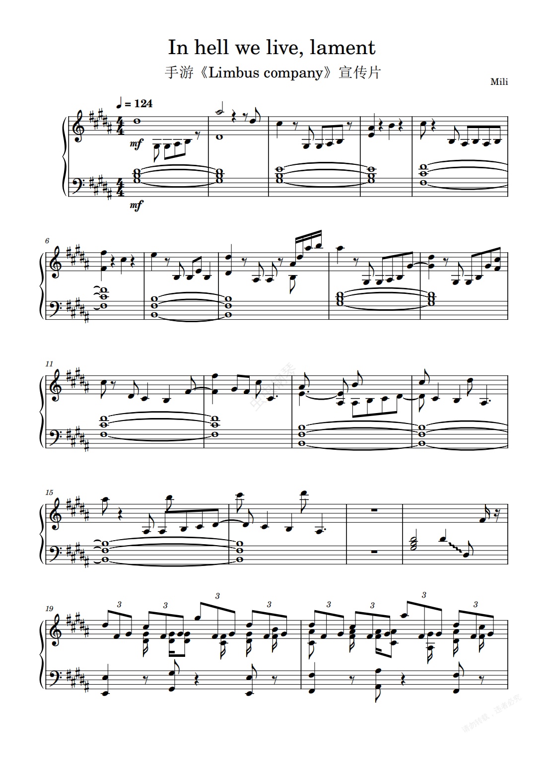 钢琴谱:In hell we live, lament (手游《边缘巴士公司》宣传片)