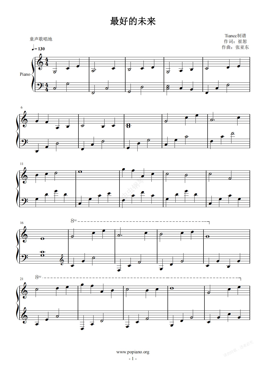 钢琴谱:《最好的未来》刘若英,童声歌唱,拜厄难度