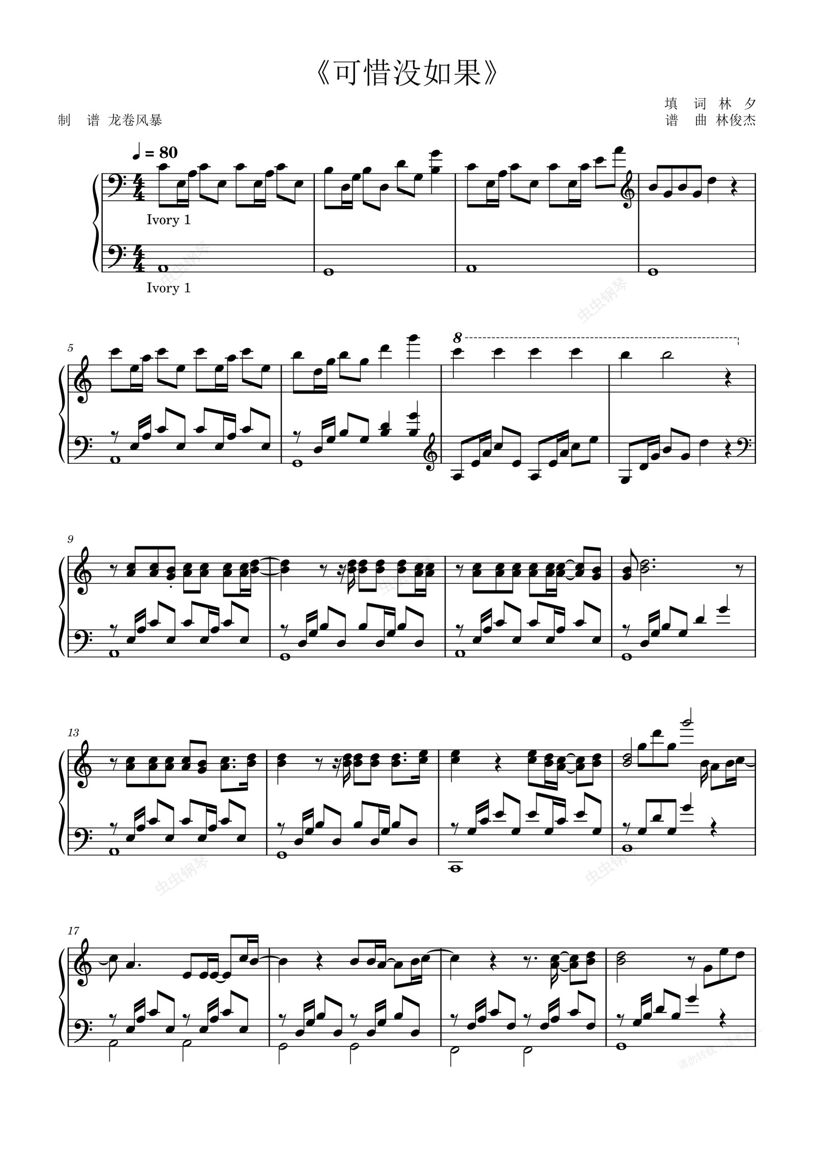 钢琴谱:《可惜没如果》林俊杰(C调高还原演奏版)