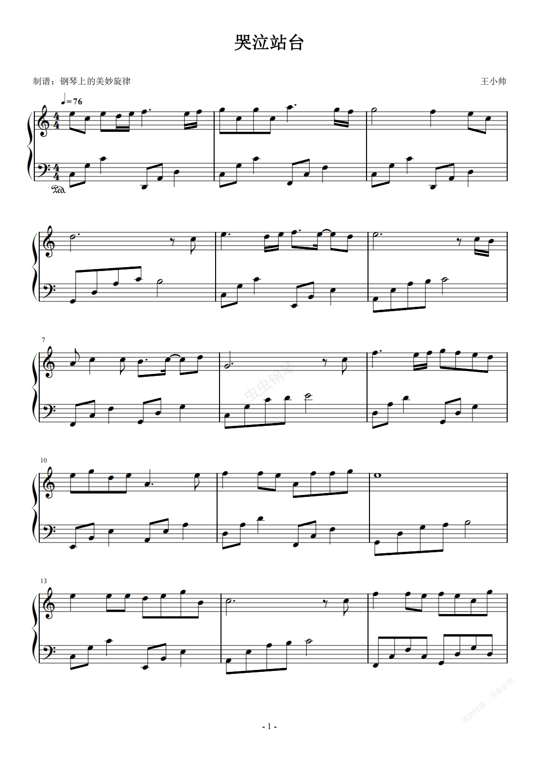 钢琴谱:哭泣站台 C调简易版 王小帅