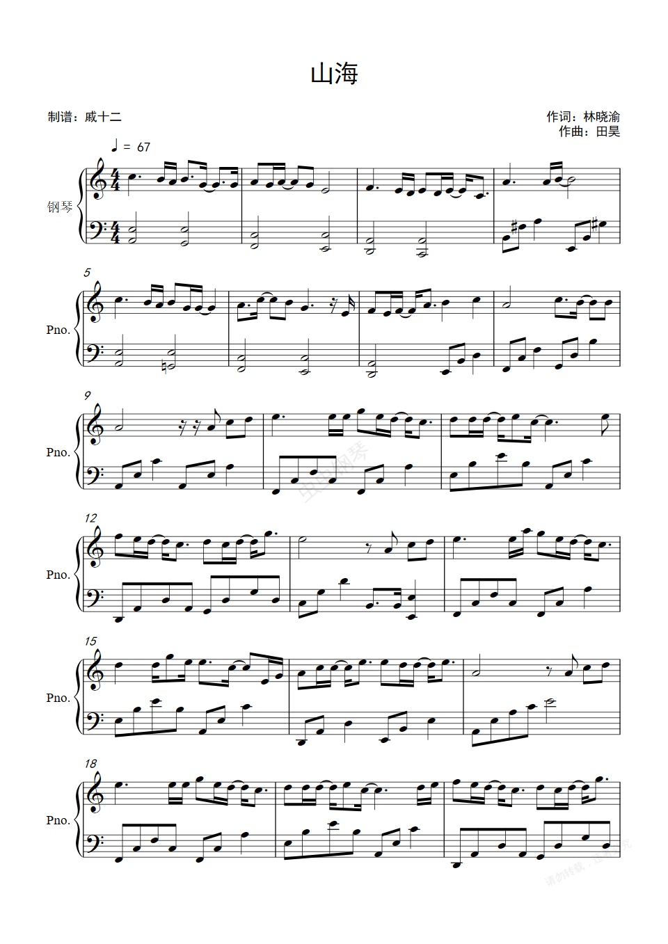 钢琴谱:山海-C调简单版-千古玦尘插曲