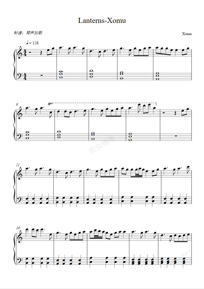 钢琴谱:Lanterns-Xomu 【治愈系纯音乐】