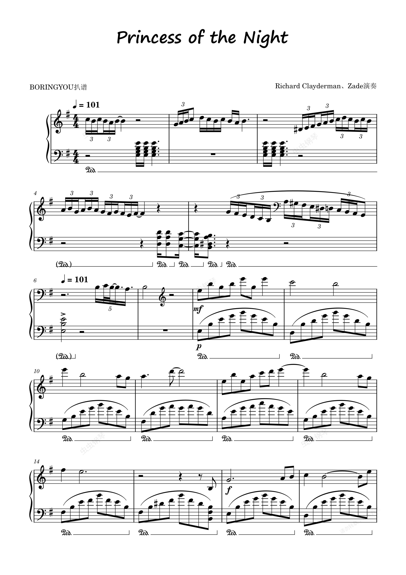 钢琴谱:Richard Clayderman 《Princess of the Night》