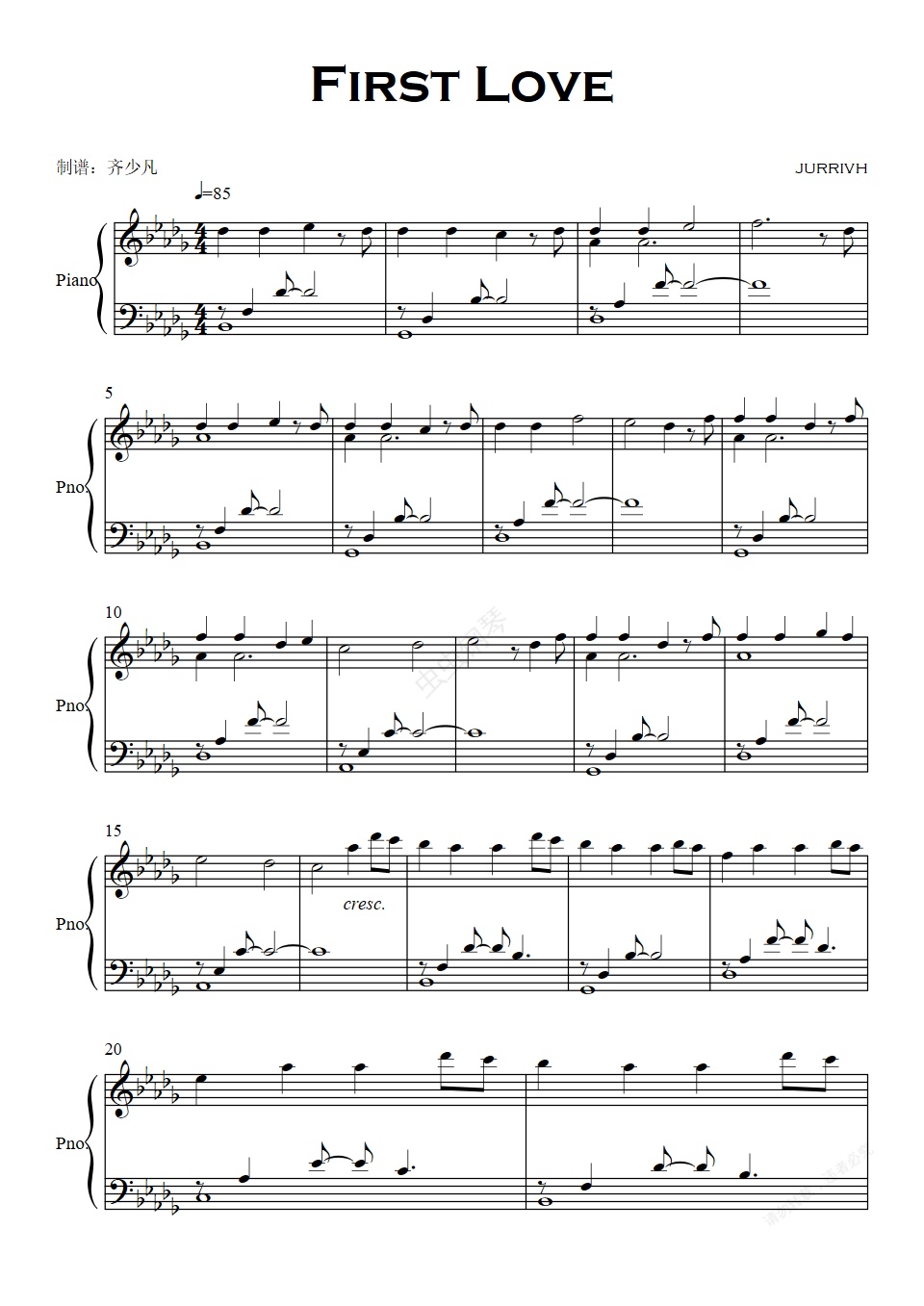 钢琴谱:【唯美】Jurrivh - First Love