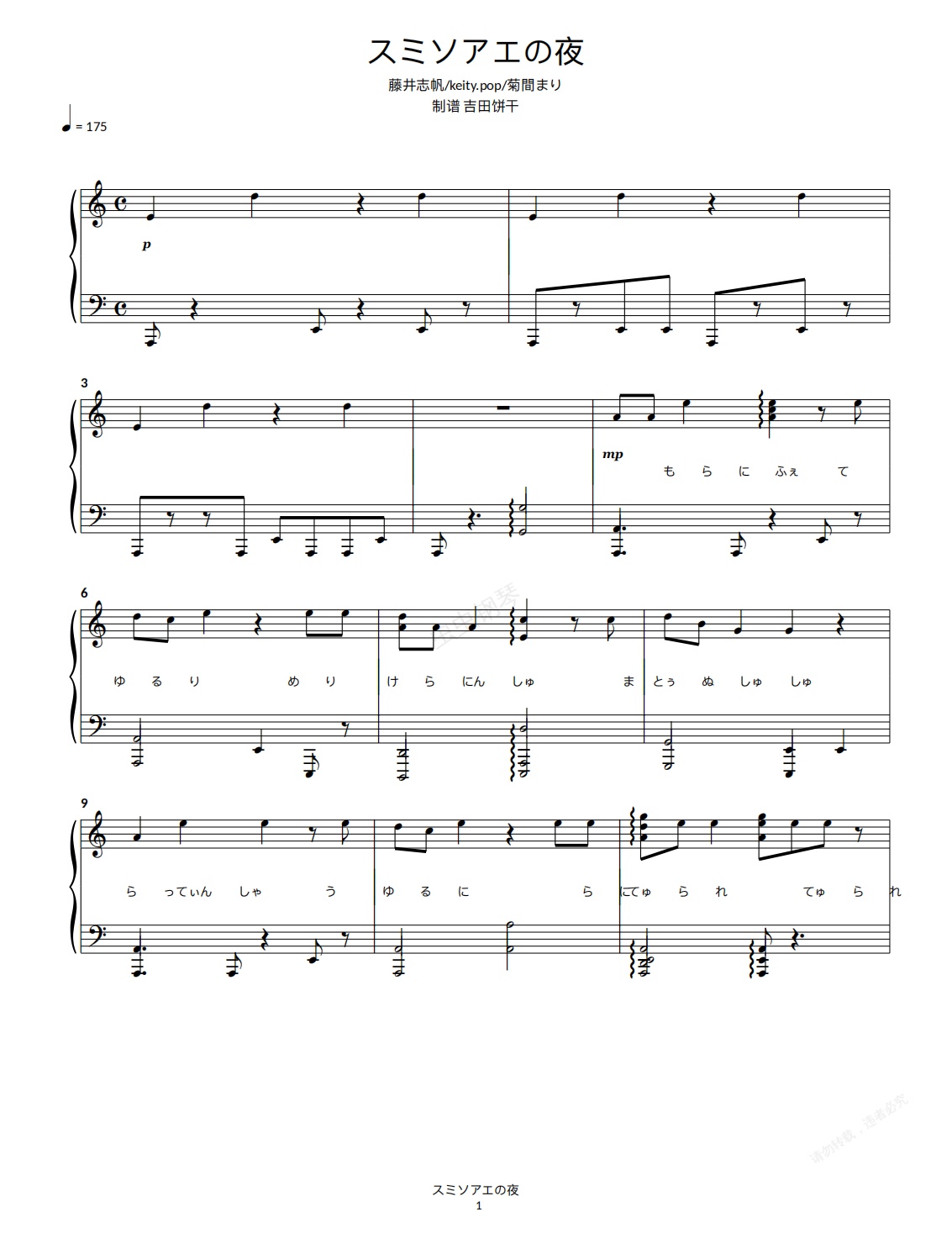 钢琴谱:【喷射战士2】醋味增之夜(萤主题曲)
