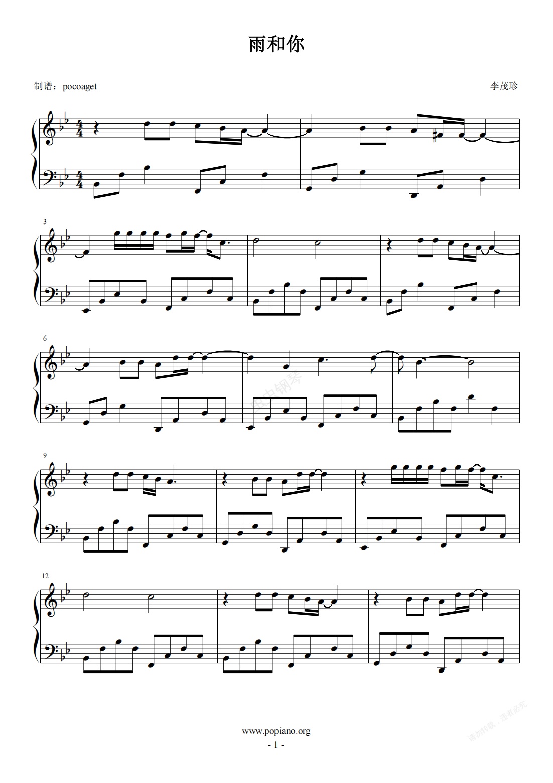 钢琴谱:《雨和你》机智的医生生活插曲,原调好上手初学者适用