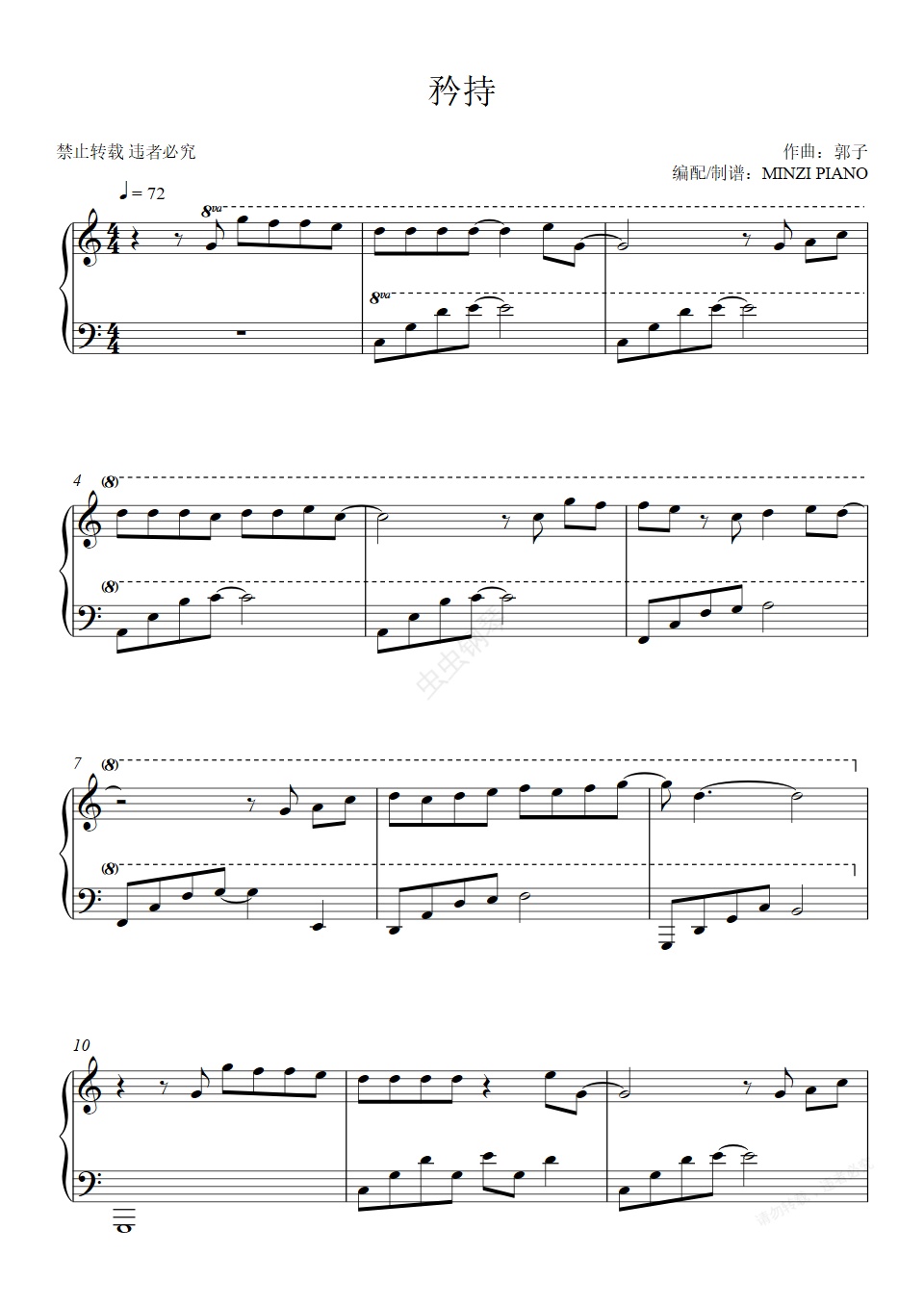 钢琴谱:王菲《矜持》C调 好听易弹奏