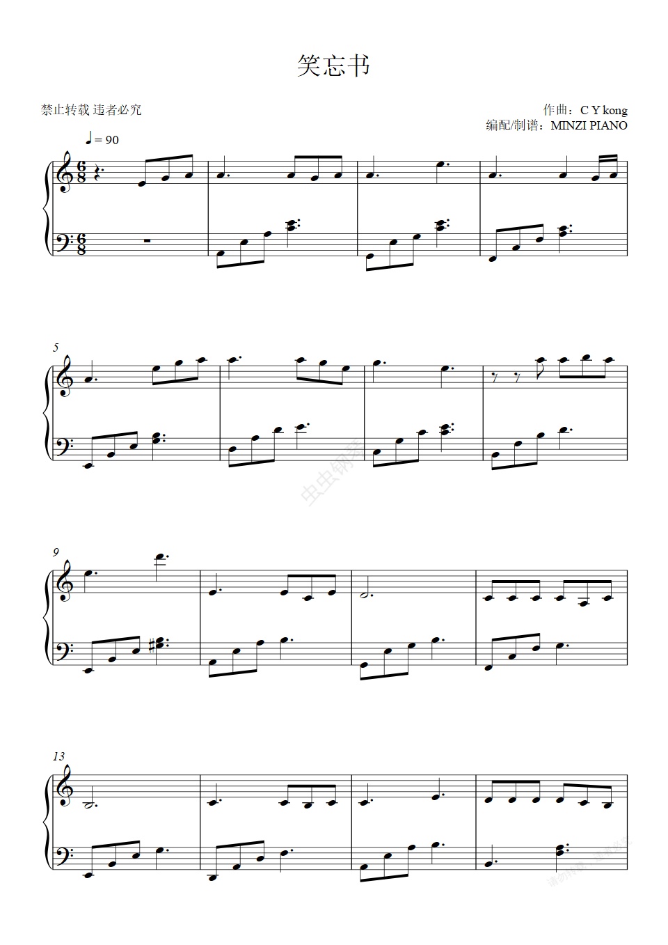 钢琴谱:王菲《笑忘书》好听易弹奏