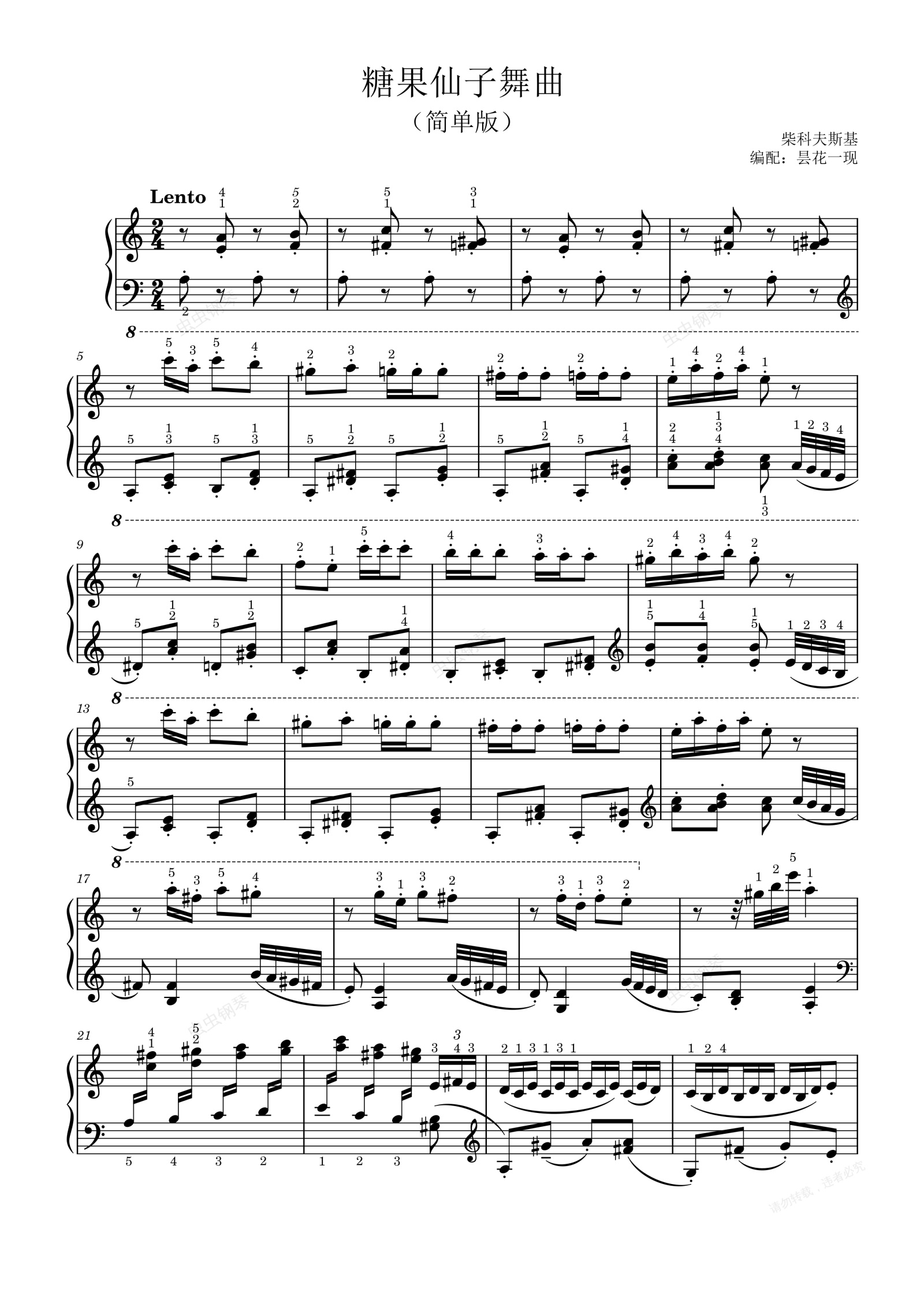 钢琴谱:糖果仙子舞曲,C调简单版 柴科夫斯基