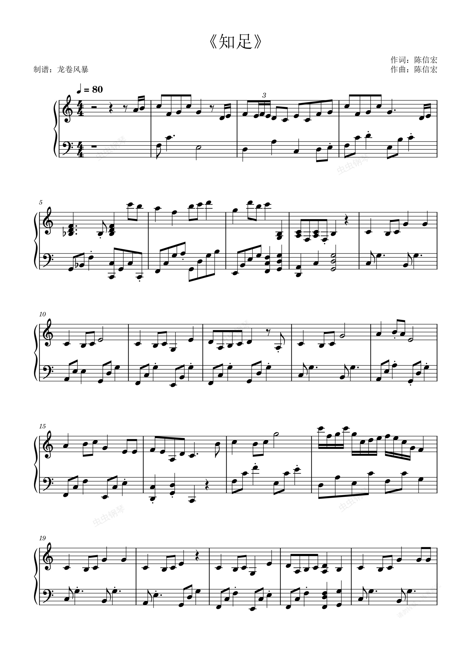 钢琴谱:《知足》五月天(C调完美演奏版)
