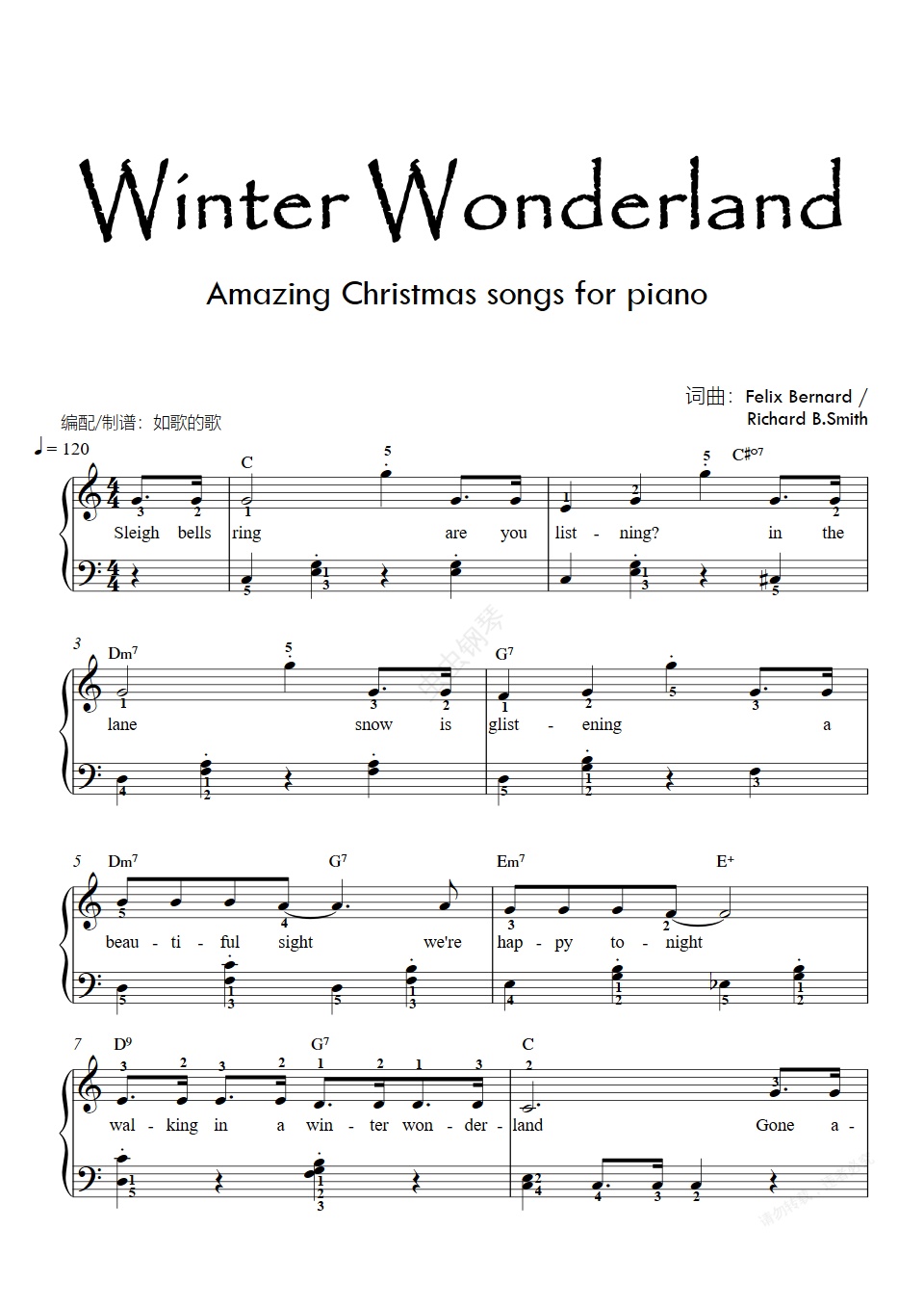 钢琴谱:Winter wonderlandC大调圣诞祝歌之二歌词指法599程度