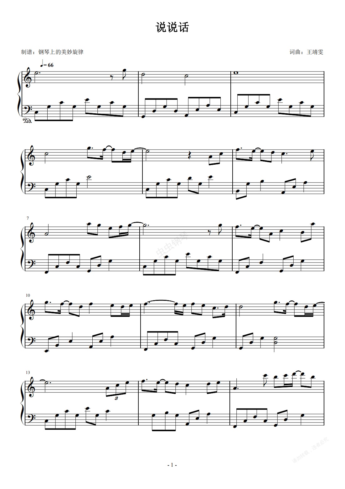 钢琴谱:说说话 C调简易版  王靖雯不胖