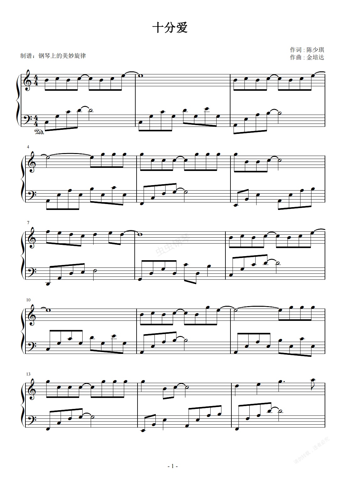 钢琴谱:十分爱 C调简易版