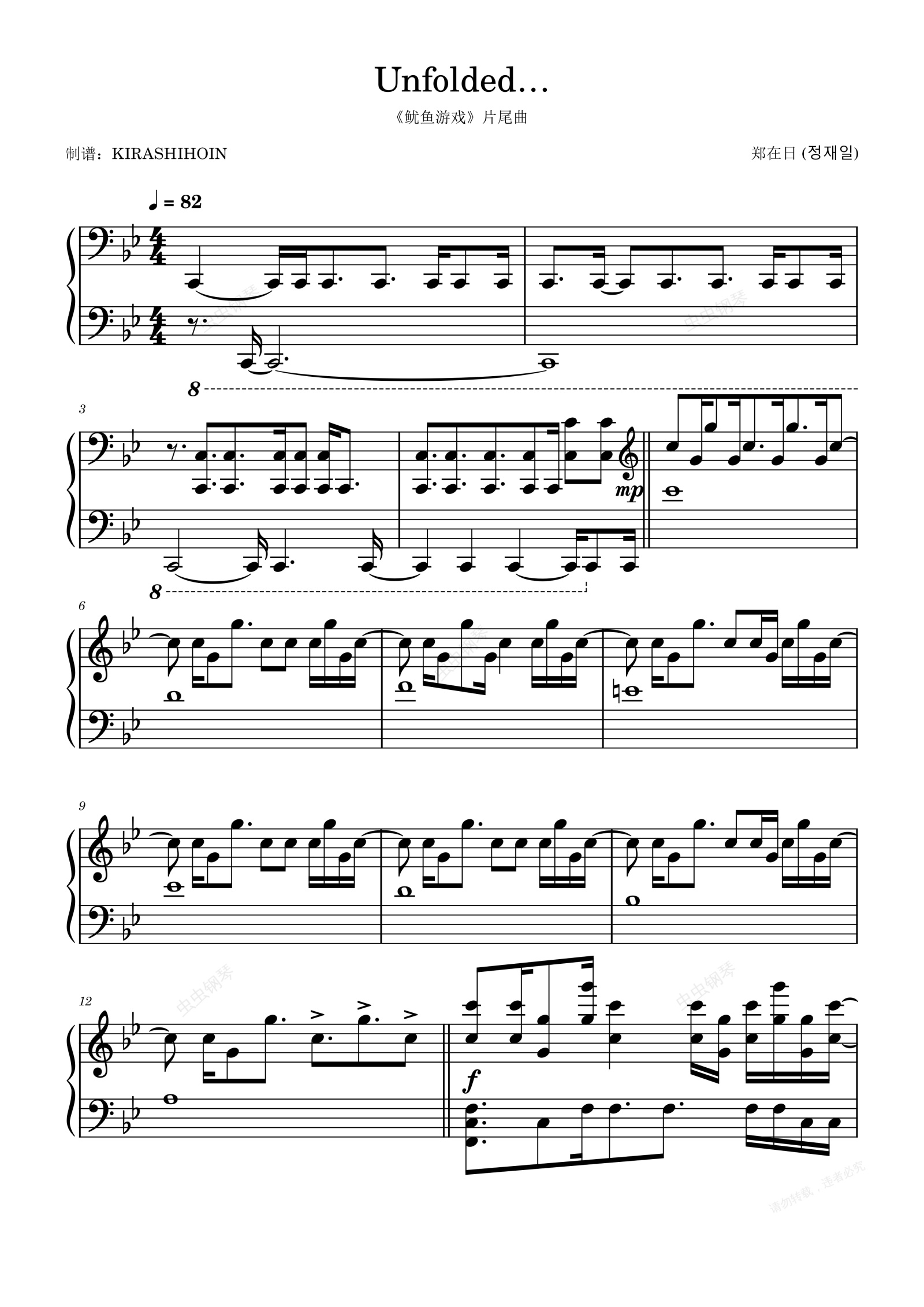 钢琴谱:Unfolded…(《鱿鱼游戏》片尾曲)- 郑在日