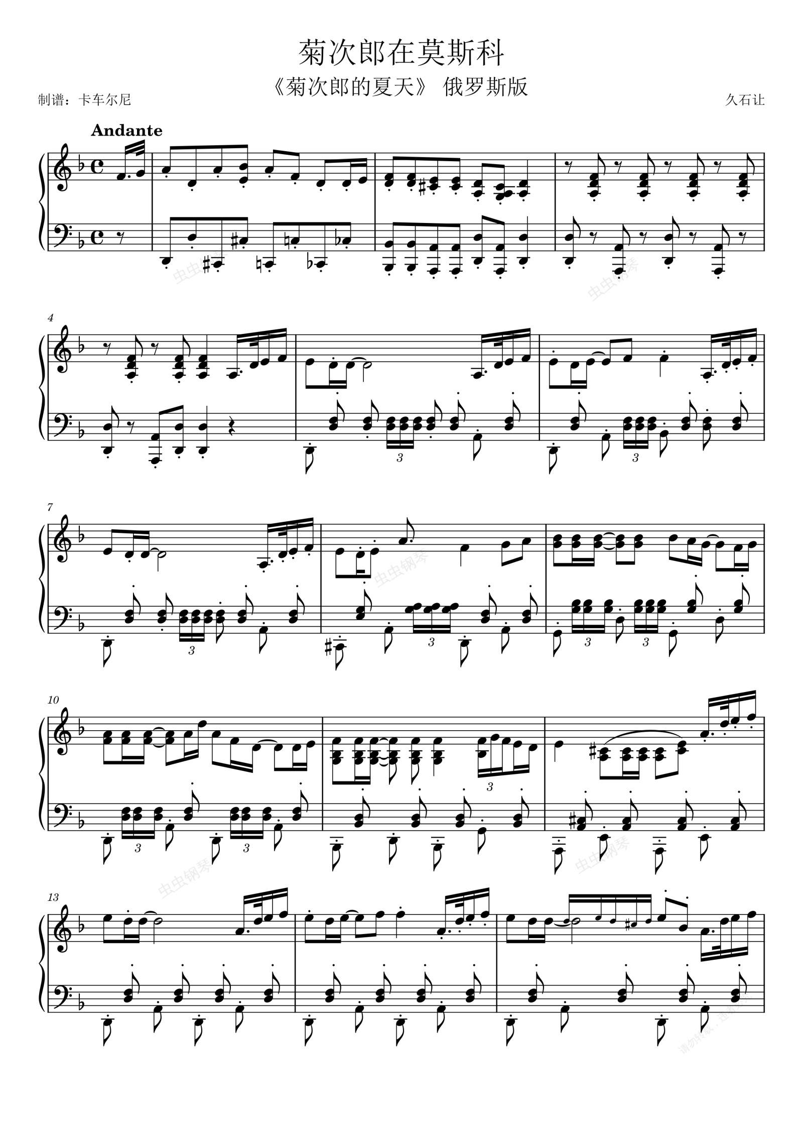 钢琴谱:菊次郎在苏联 (菊次郎的夏天俄罗斯风版)