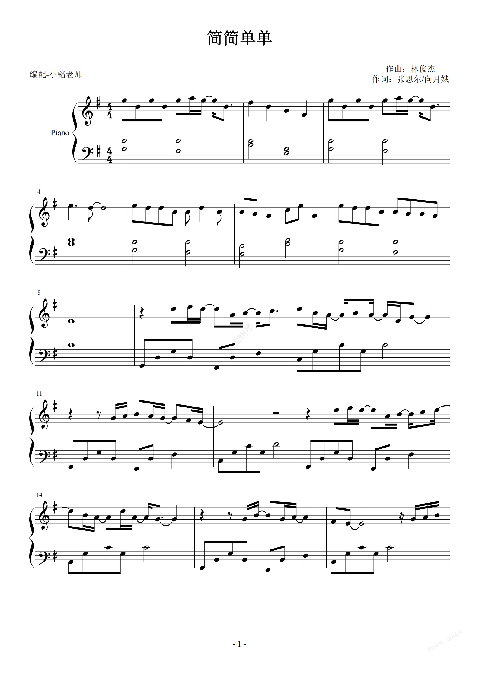 钢琴谱:简简单单 【简易 动听】