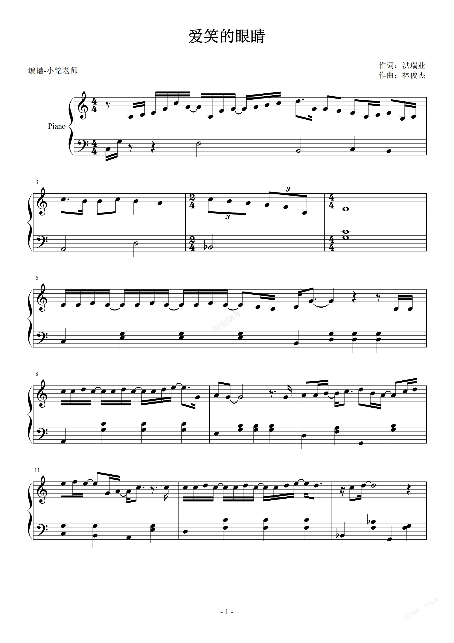 钢琴谱:爱笑的眼睛 【简易 动听】
