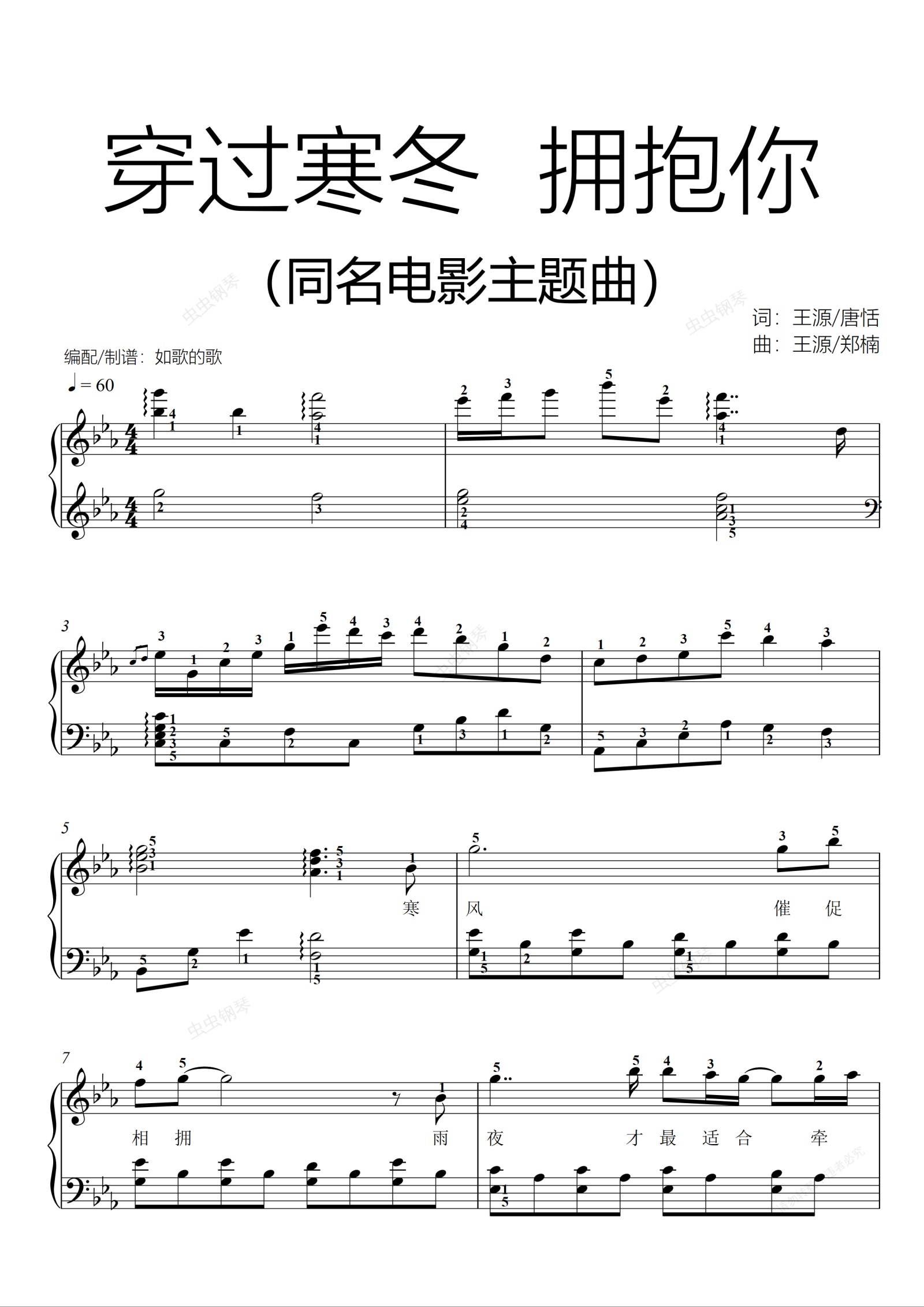 钢琴谱:穿过寒冬拥抱你简版指法原调