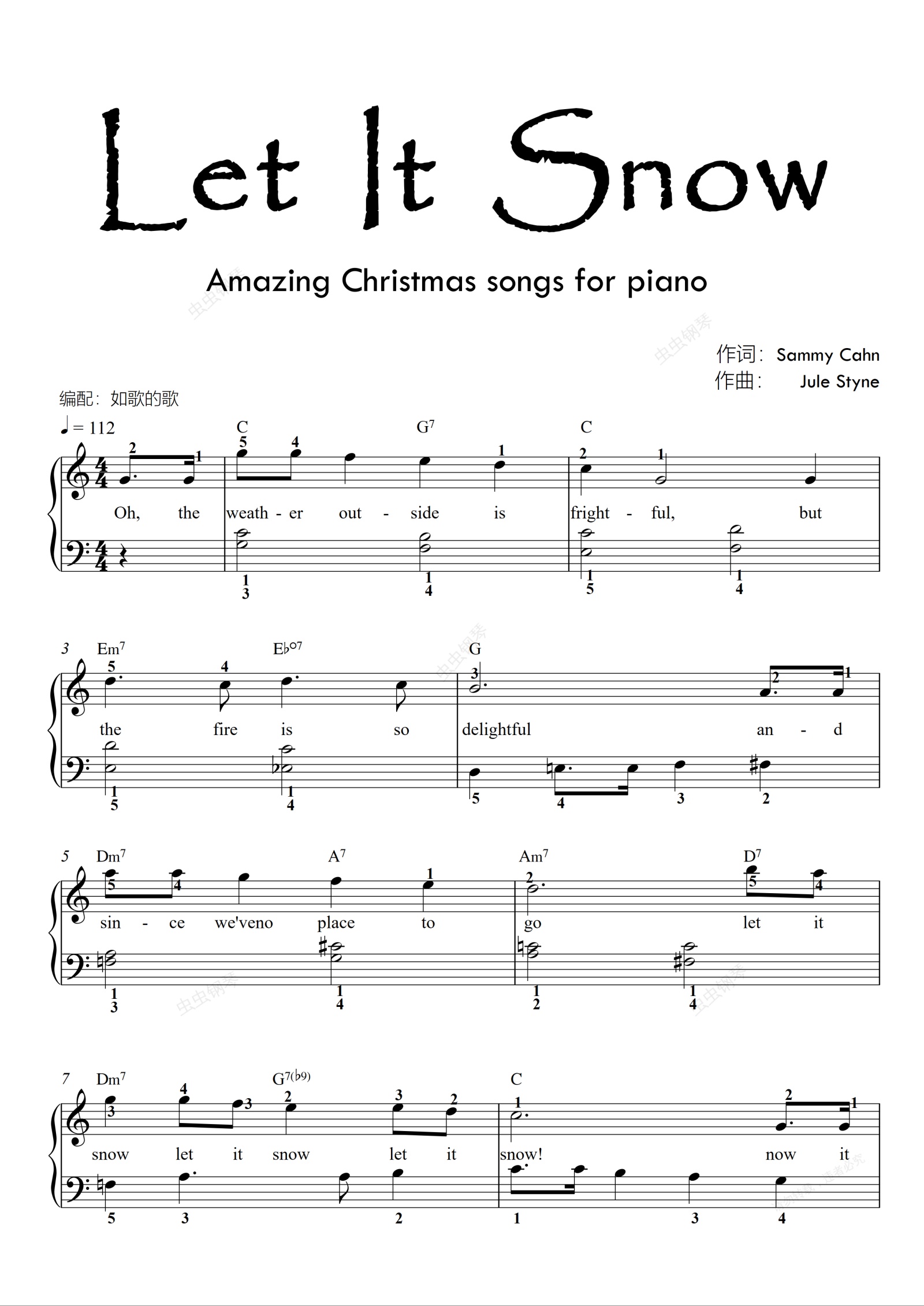 钢琴谱:Let it snowC大调圣诞祝歌之四歌词指法599难度