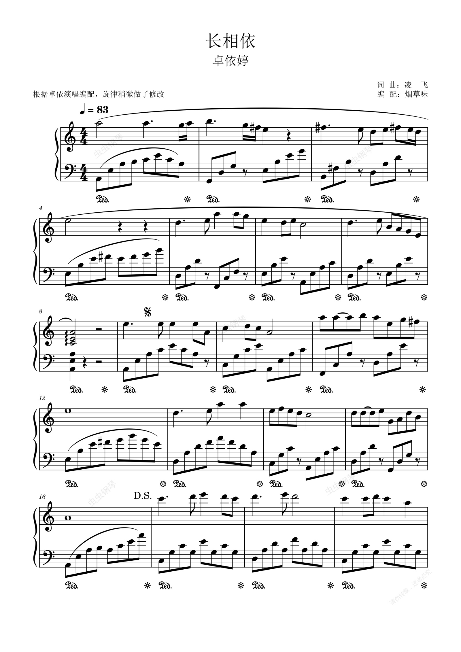 钢琴谱:长相依(C调独奏)