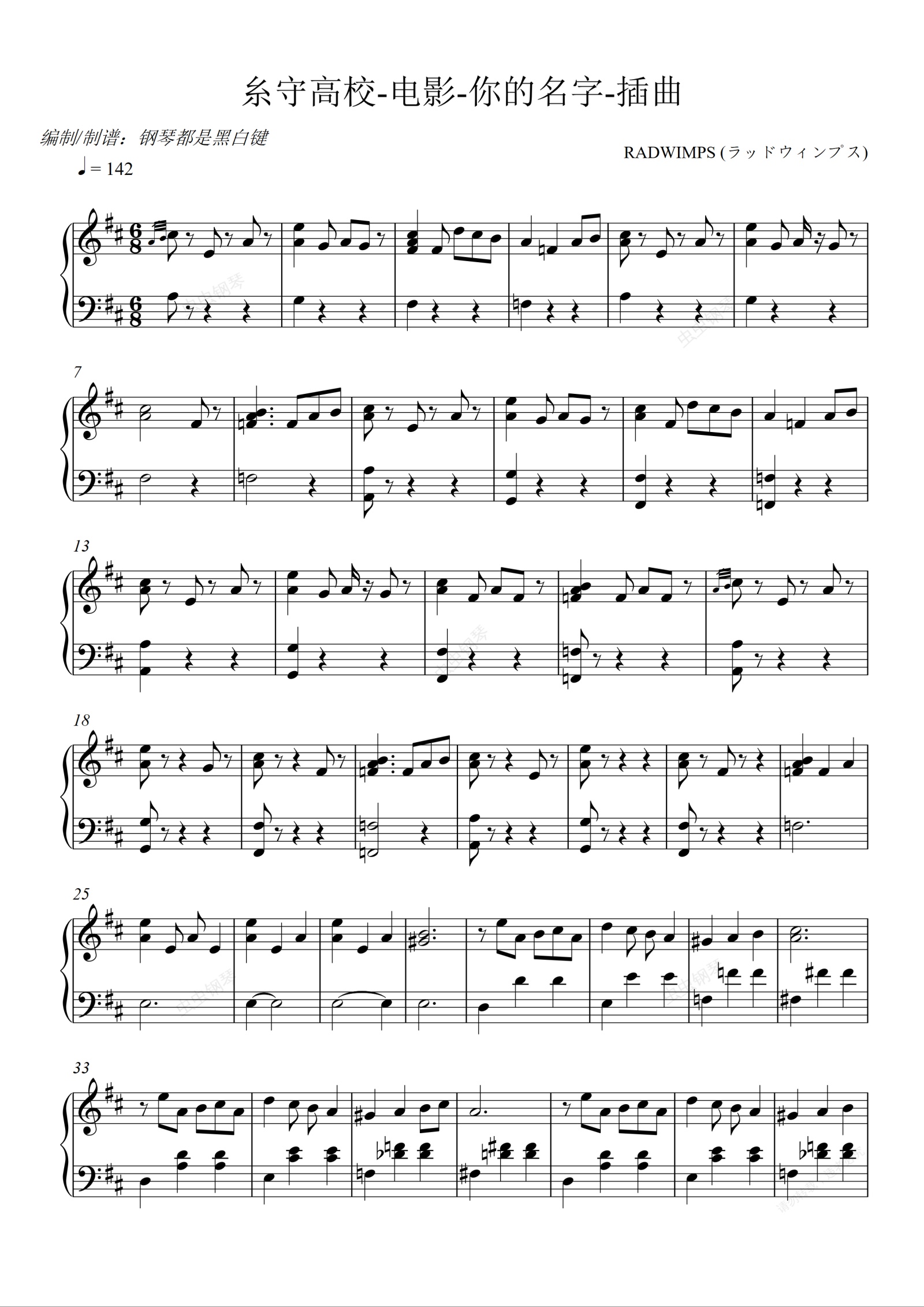 糸守高校是新海诚监督动画电影新作《你的名字》的插曲。《你的名字》是由新海诚执导的一部日本动画电影,由神木隆之介、上白石萌音担任主要配音演员,人设是由参与过《我们仍未知道那天所看见的花的名字。》的田中将贺担当,作画导演由曾创作过《千与千寻》、《幽灵公主》的安藤雅司执笔。作品于2016年8月26日在日本上映。中国内地于2016年12月2日上映,分为日语原声中文字幕版和中文配音版2种版本。作品讲述了男女高中生在梦中相遇的幻想故事。