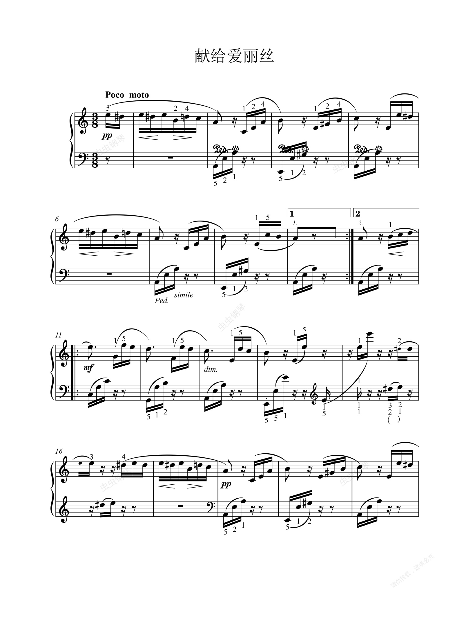 钢琴谱:献给爱丽丝(WoO59)