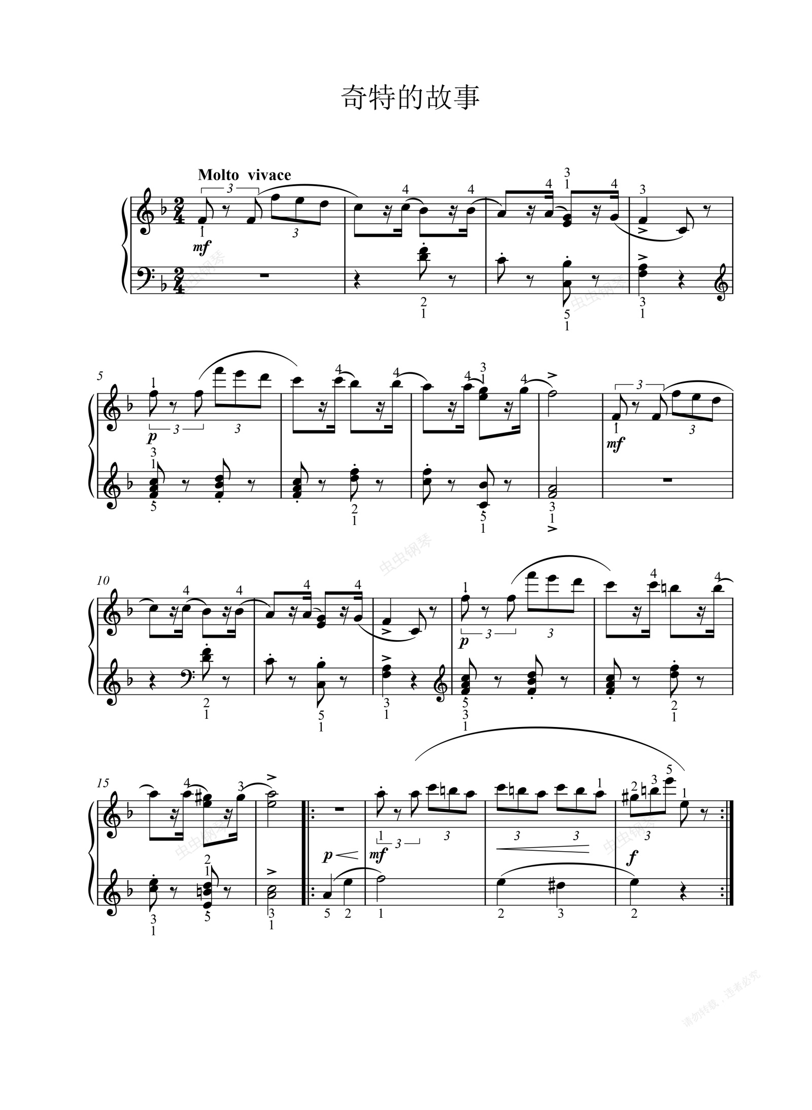 钢琴谱:奇特的故事(Op.138,No.9)