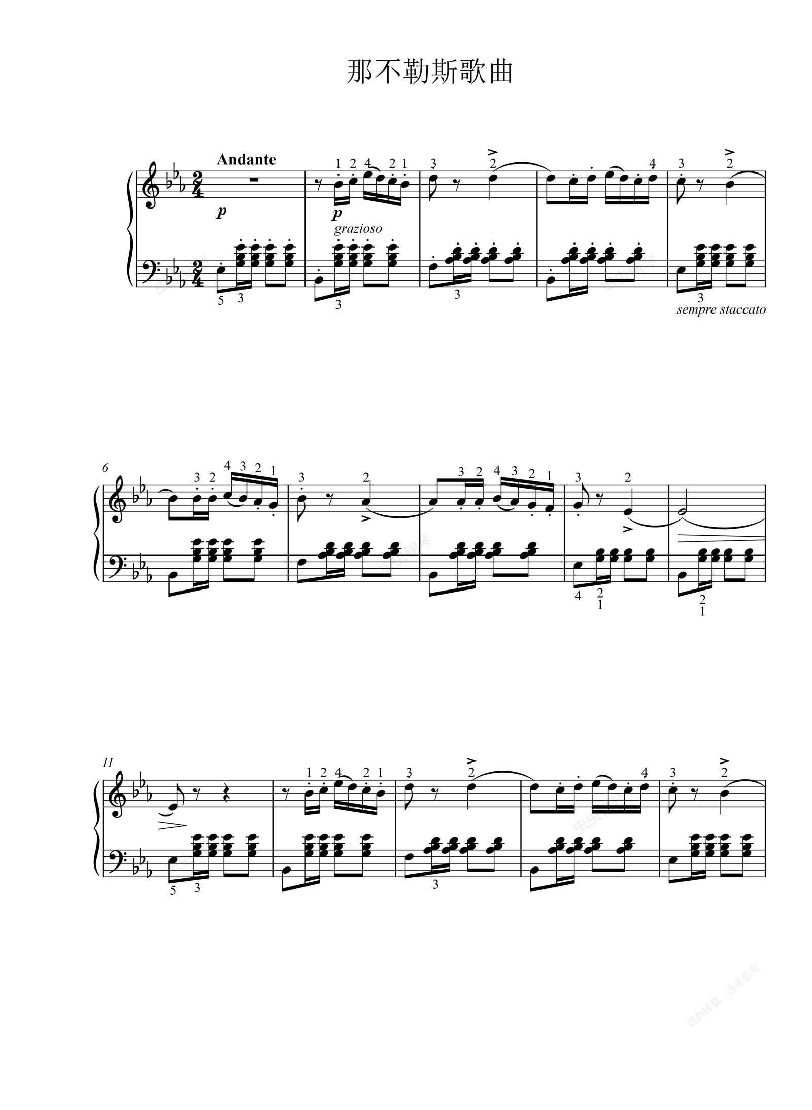 钢琴谱:那不勒斯歌曲