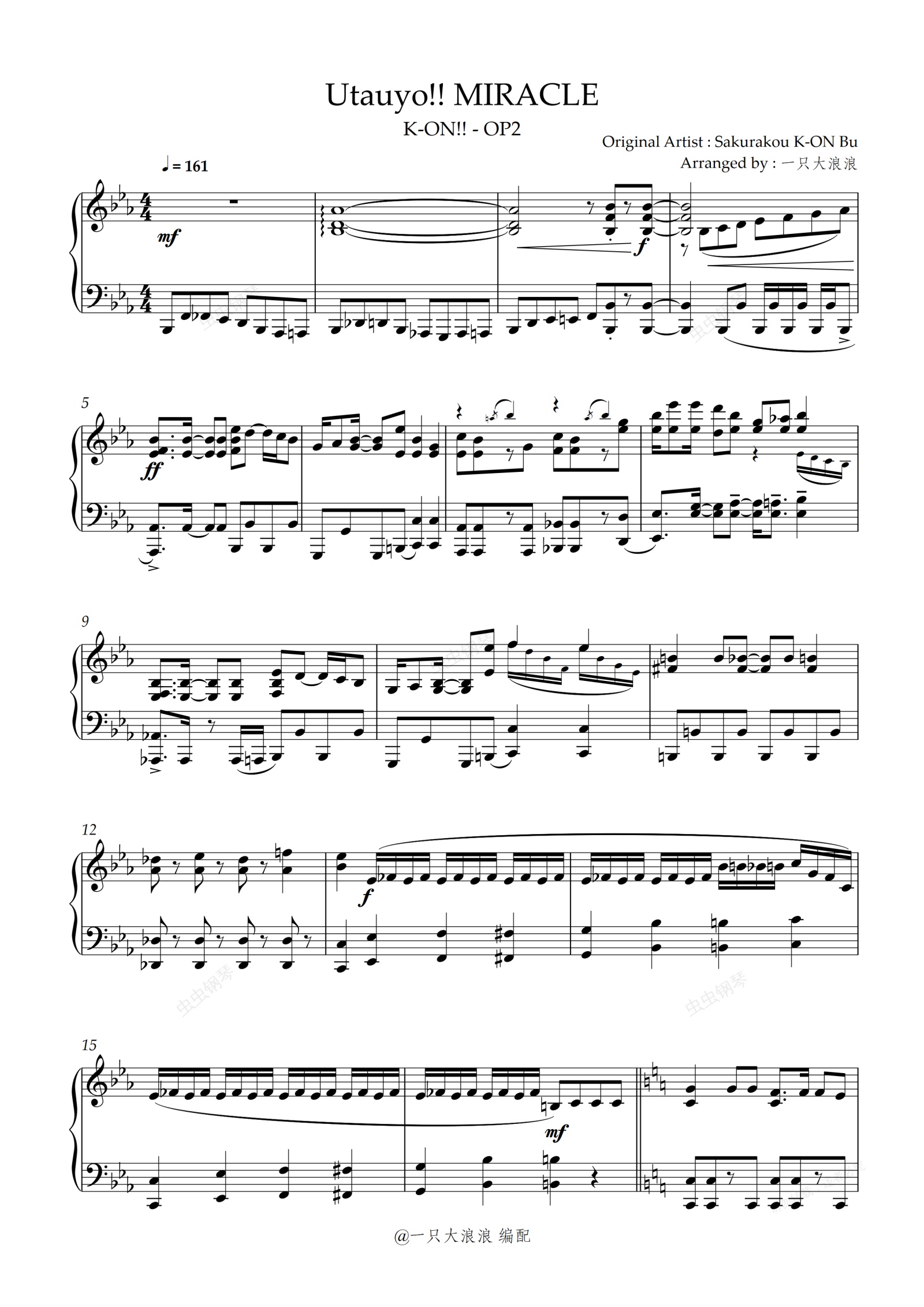 钢琴谱:轻音少女 第二季 OP2《Utauyo!! MIRACLE》钢琴独奏版(TV Size)