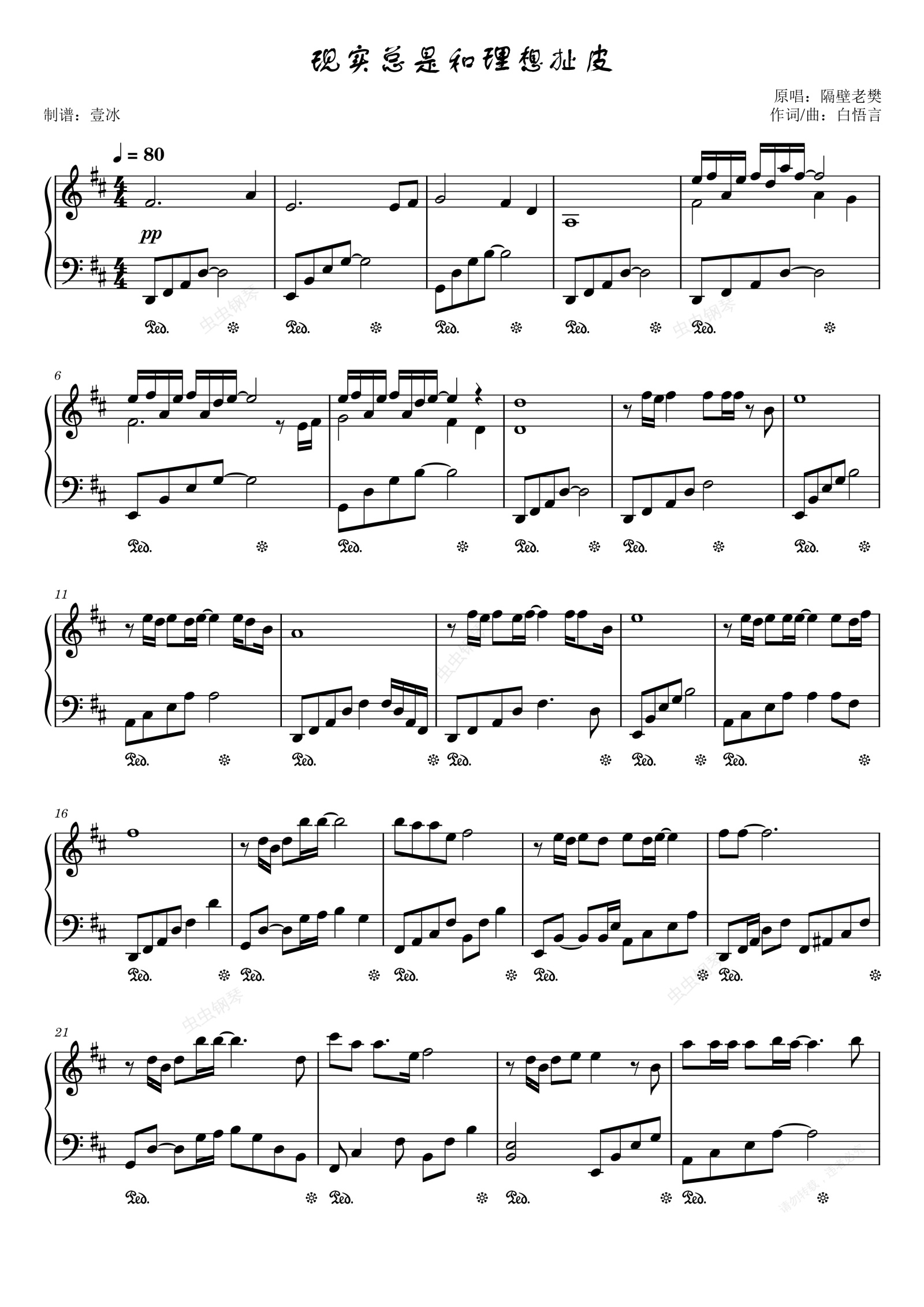 钢琴谱:现实总是和理想扯皮//电影《曾经相爱的我们》片尾曲-原调