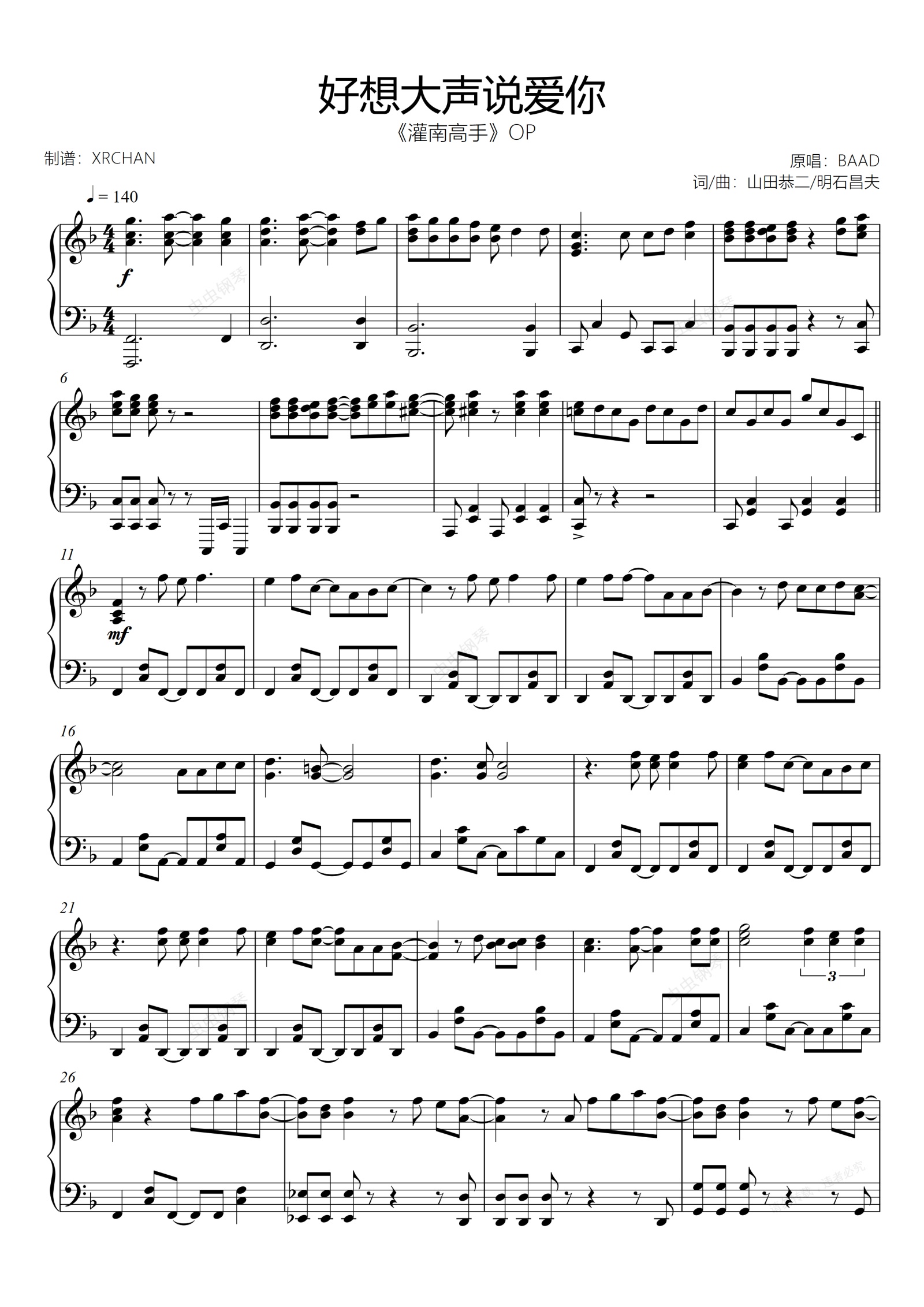 钢琴谱:《灌篮高手》OP 好想大声说爱你/君が好きだと叫びたい 初级