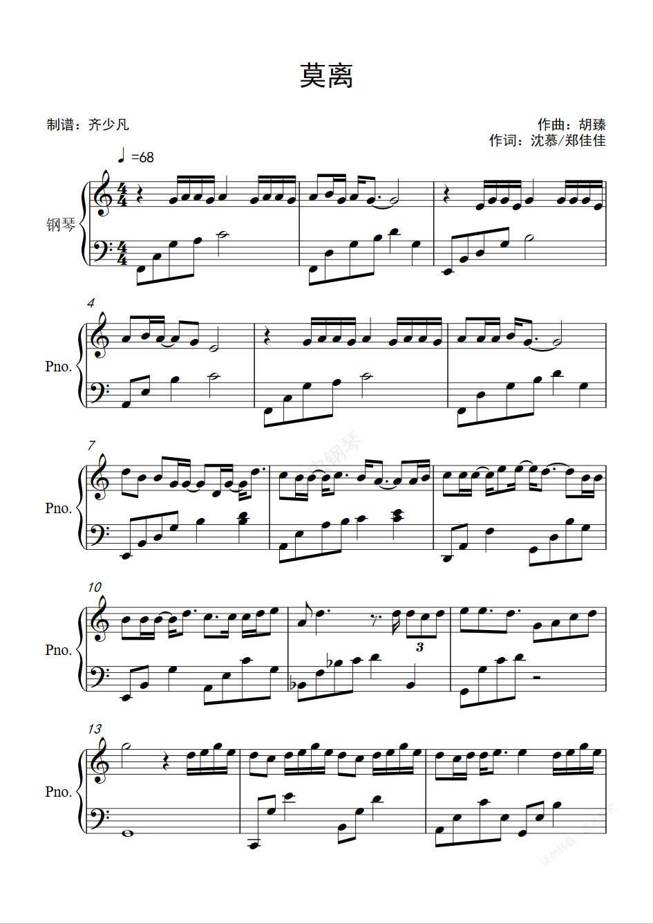 钢琴谱:莫离-C调简单版-嘉南传片头曲