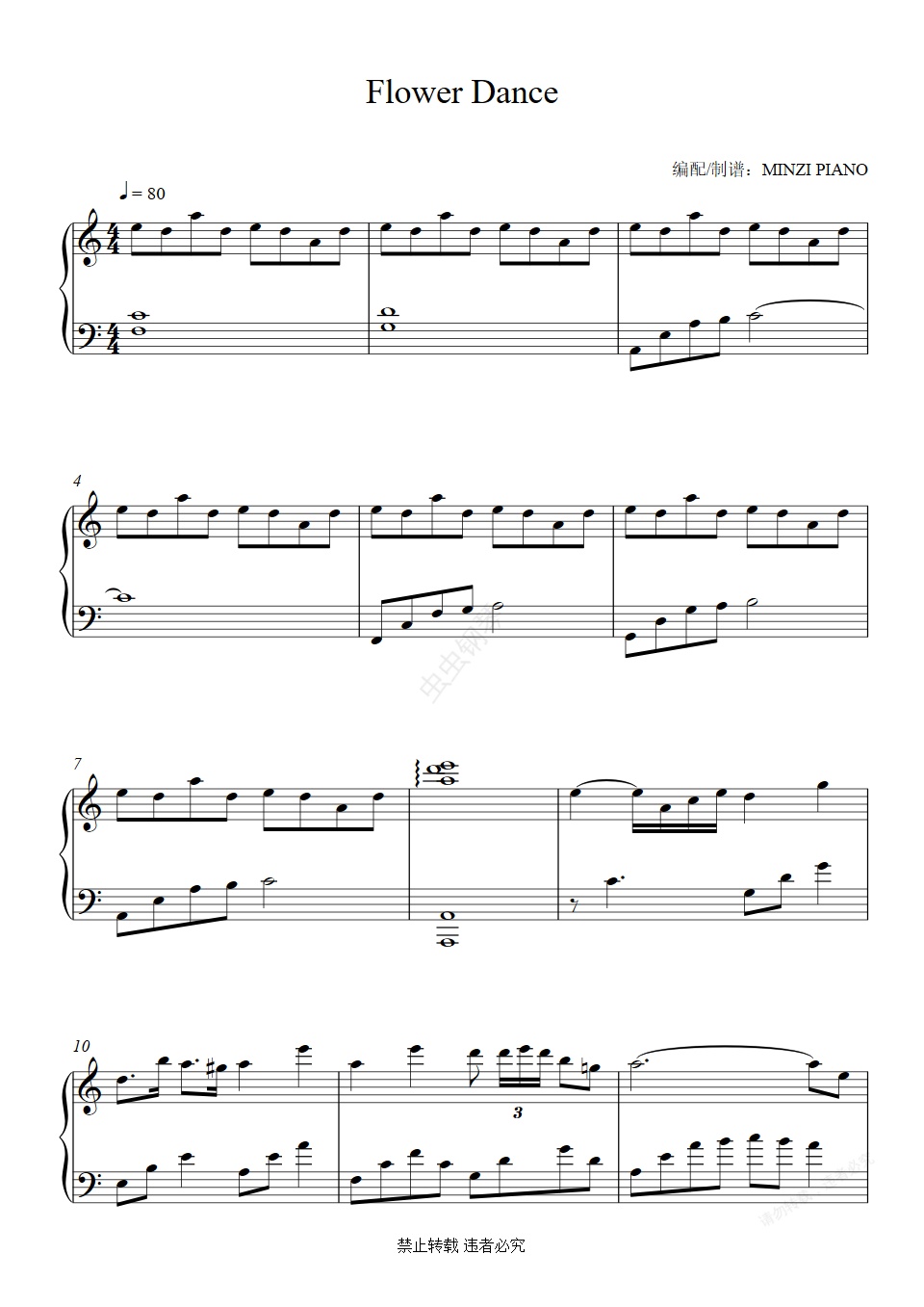 钢琴谱:好听易弹奏《Flower Dance》C调