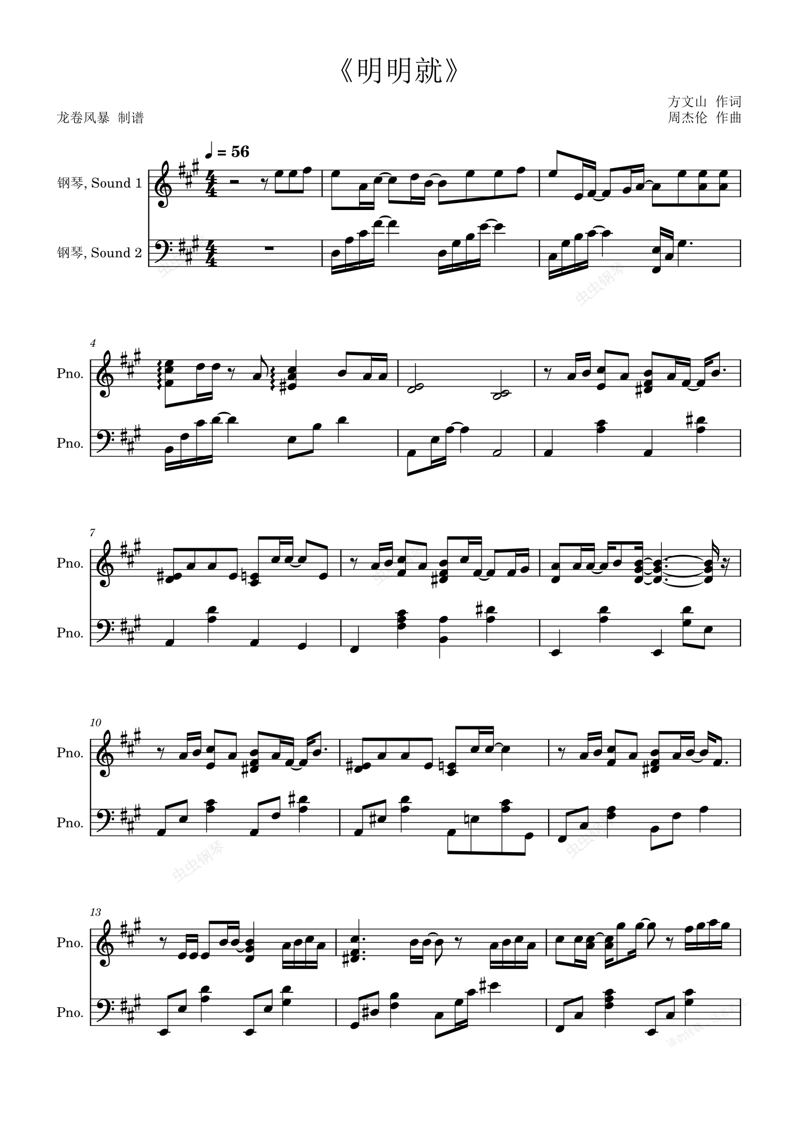 钢琴谱:《明明就》周杰伦(超高还原版)