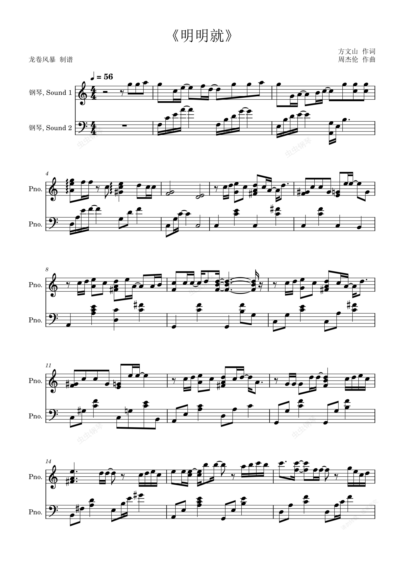 钢琴谱:《明明就》周杰伦(C调高还原版)