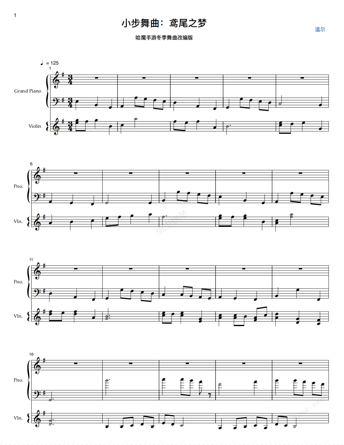 钢琴谱:小步舞曲:鸢尾之梦-哈利波特魔法觉醒舞曲-钢琴&小提琴