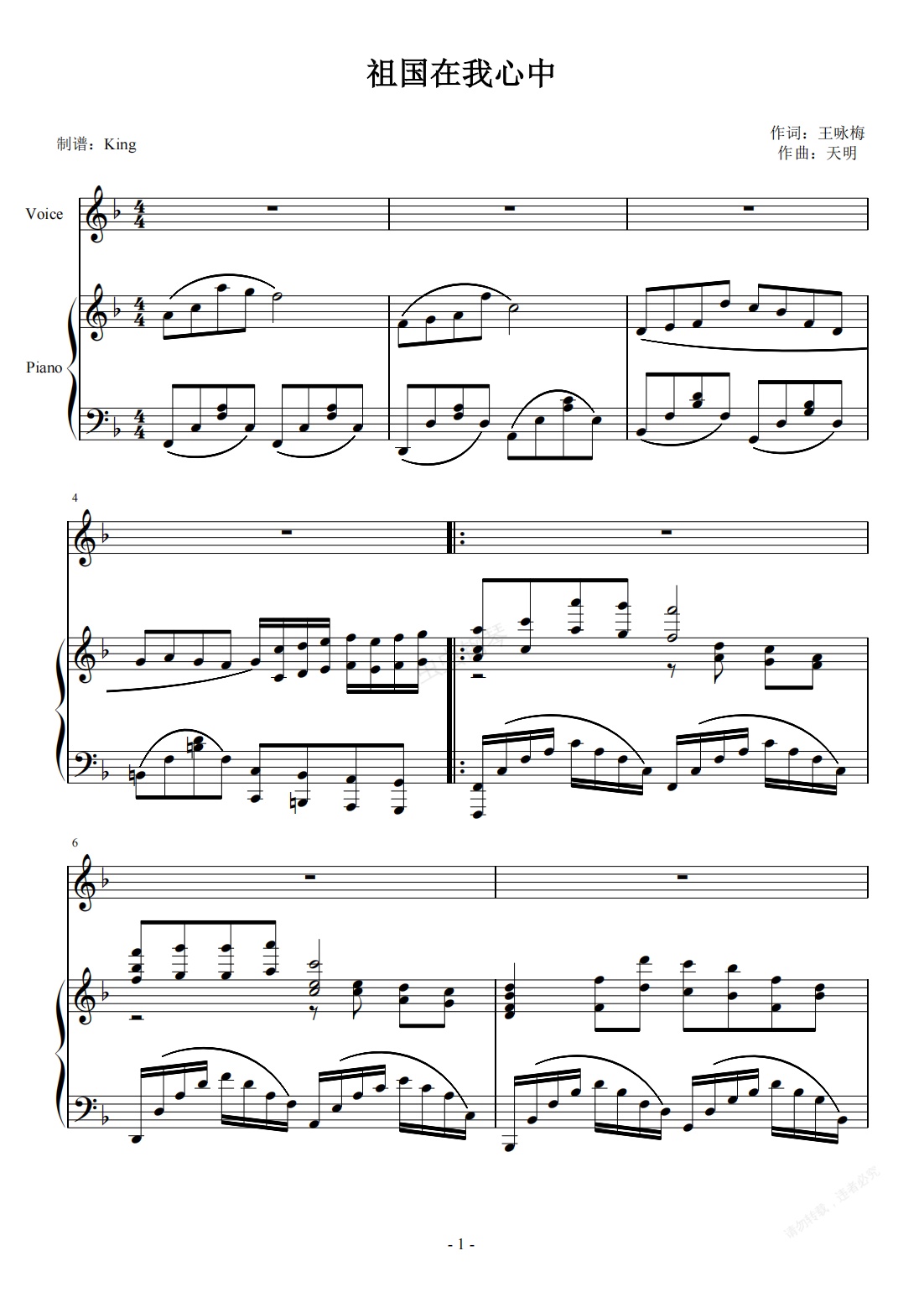 钢琴谱:祖国在我心中 正谱钢琴伴奏