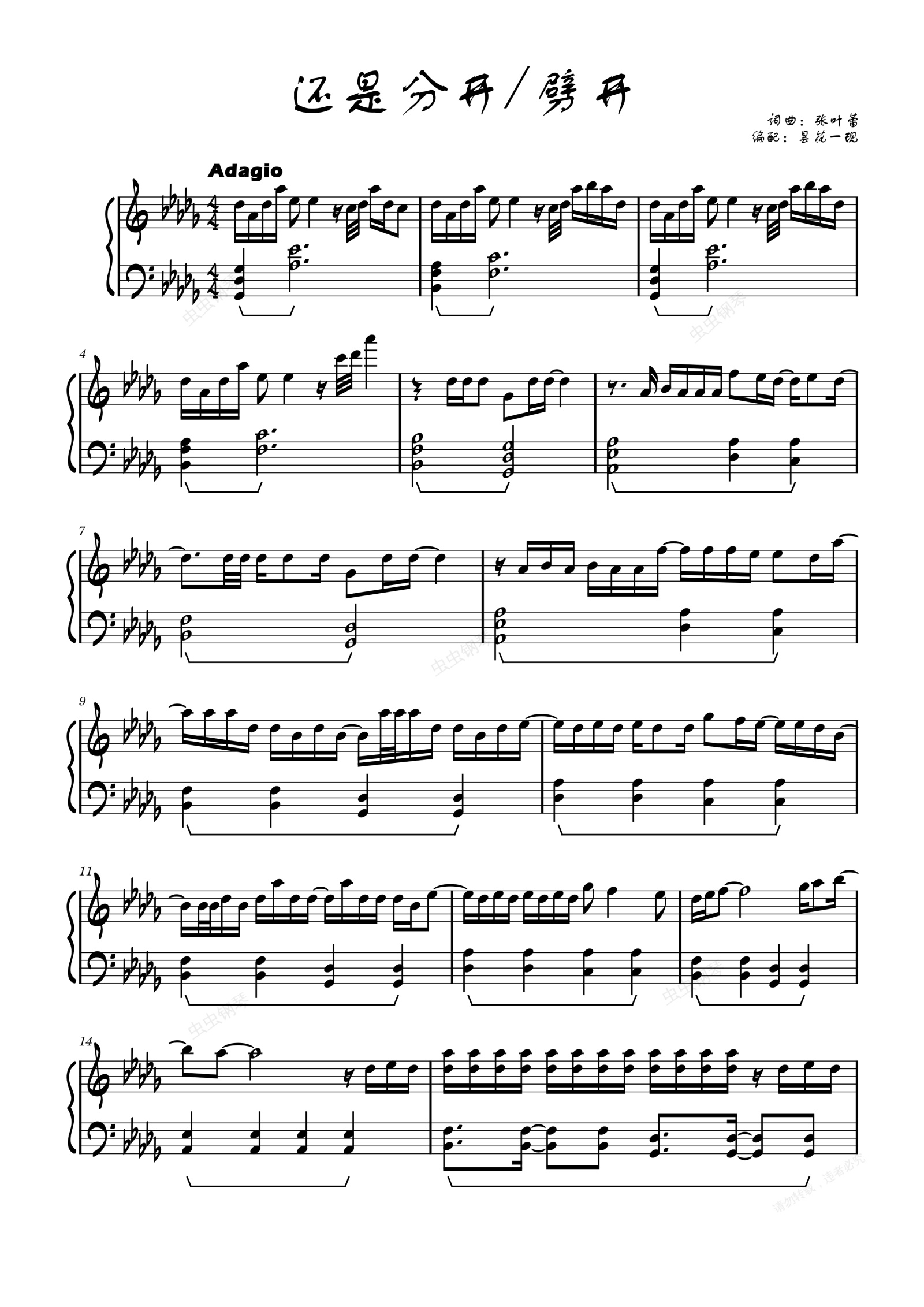 钢琴谱:还是劈开/分开 张叶蕾