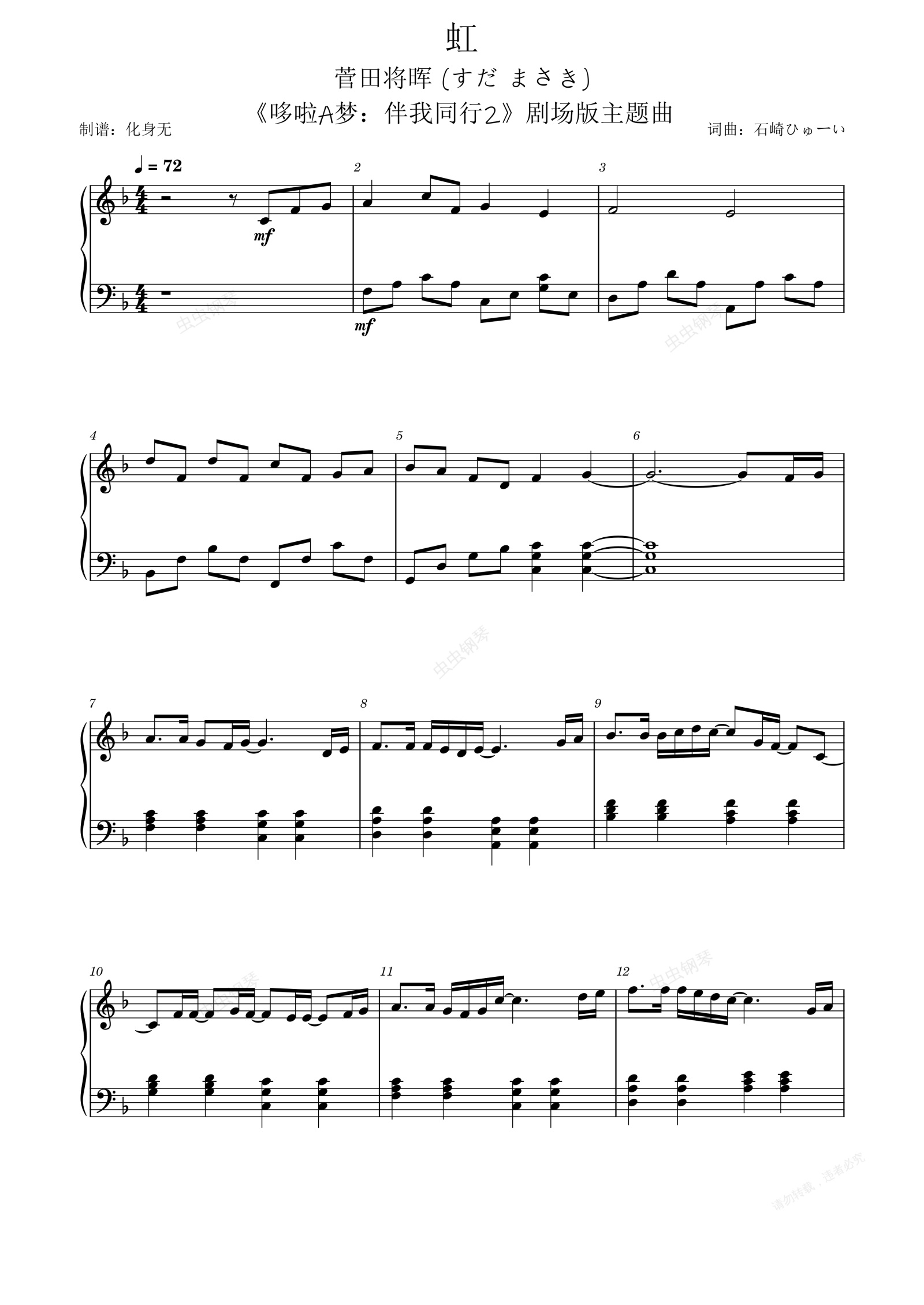 钢琴谱:虹 《哆啦A梦:伴我同行2》剧场版主题曲 菅田将晖