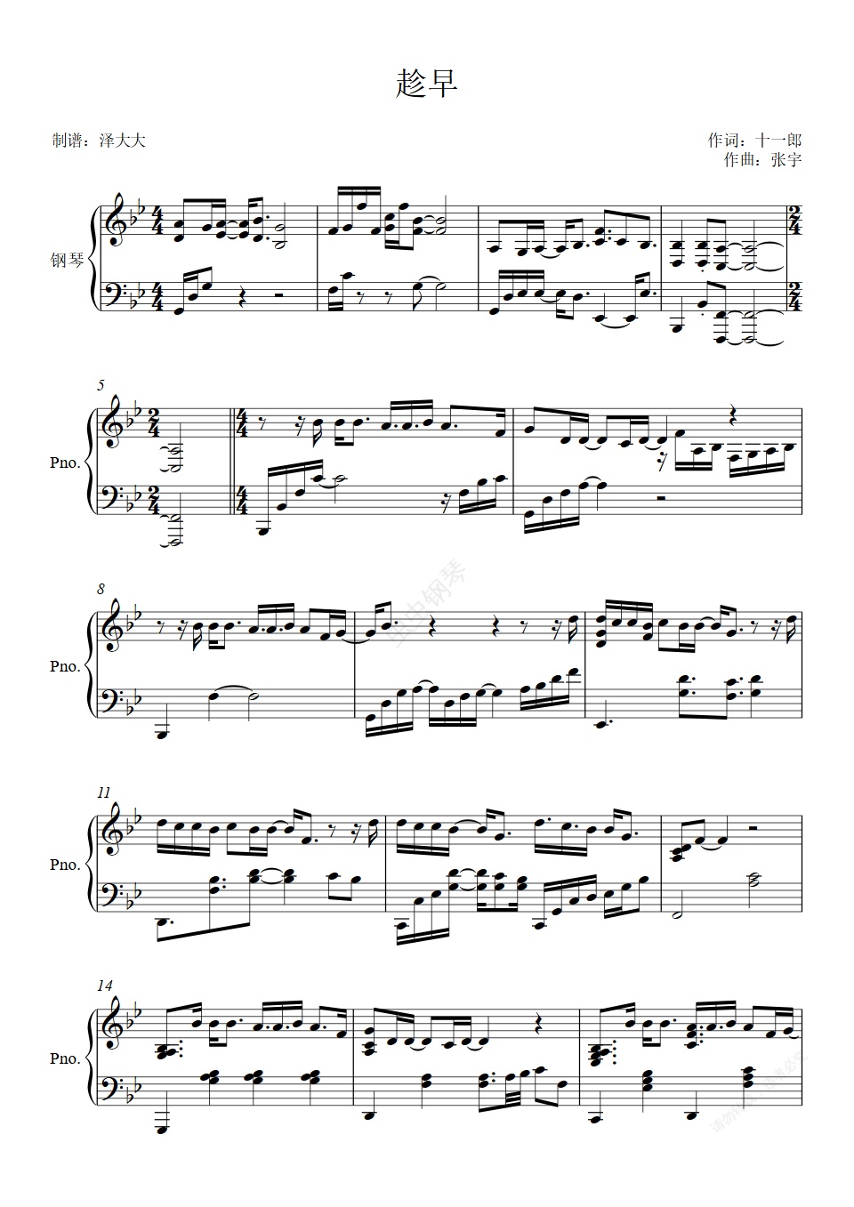 钢琴谱:趁早【完美独奏版】张宇 泽大大
