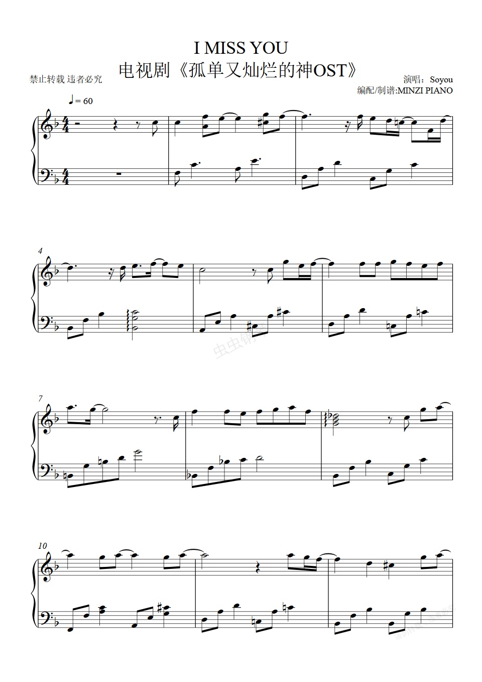 钢琴谱:原调《I miss you》孤单又灿烂的神OST