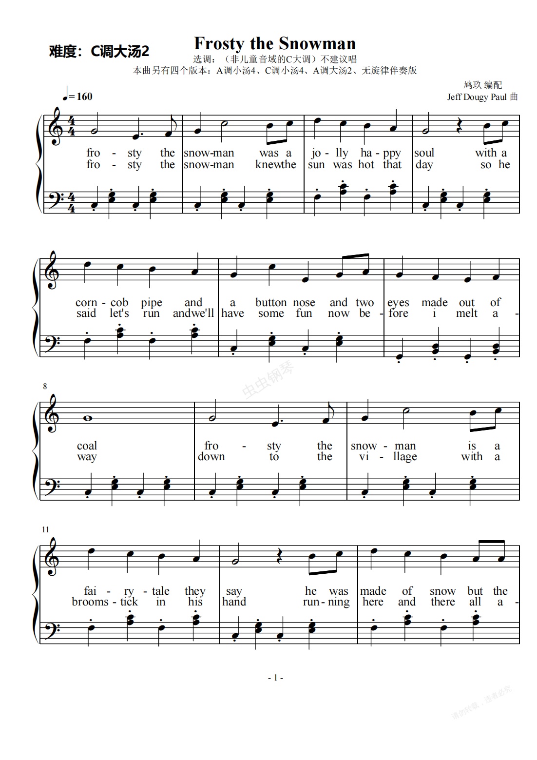 钢琴谱:Frosty the Snowman(C调大汤2版本)圣诞儿歌