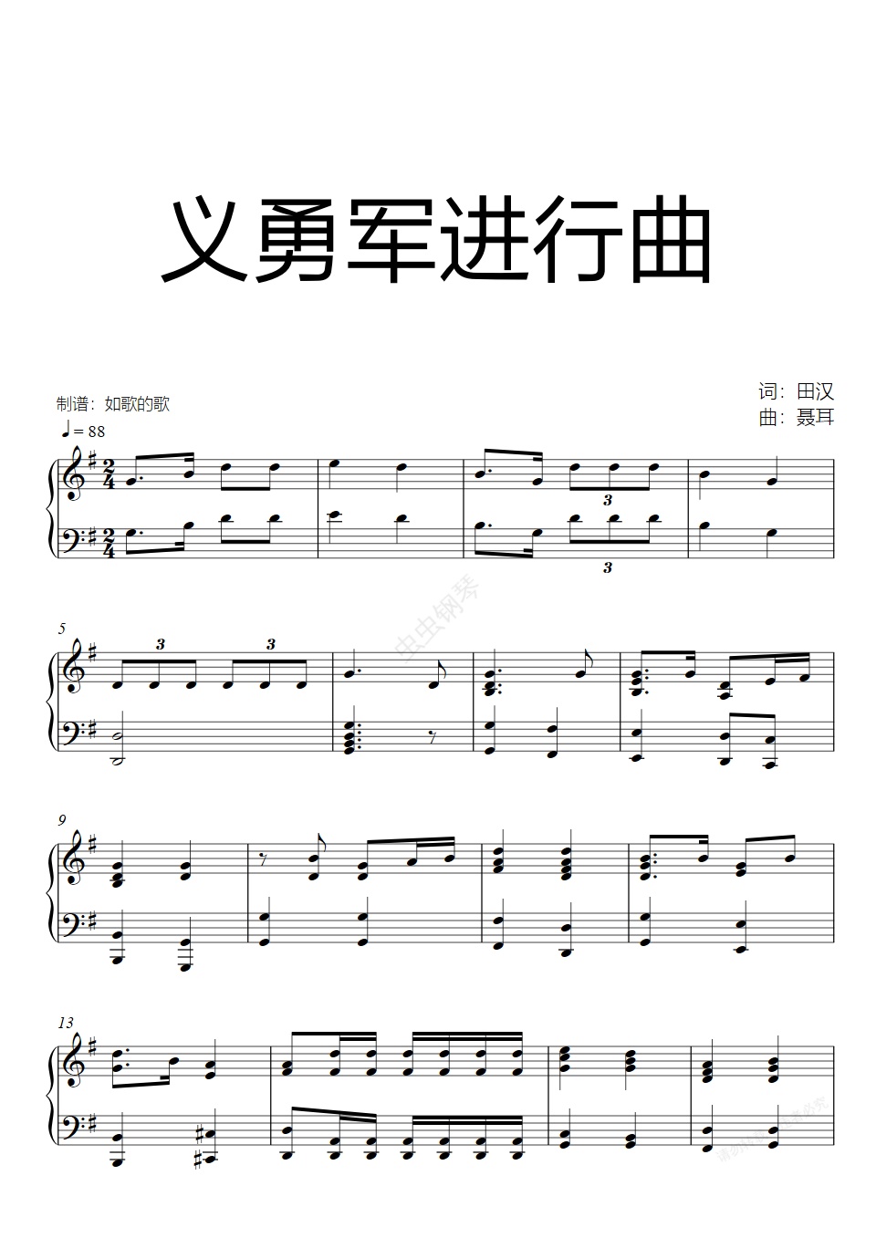 钢琴谱:义勇军进行曲-2015郎朗独奏版扒制