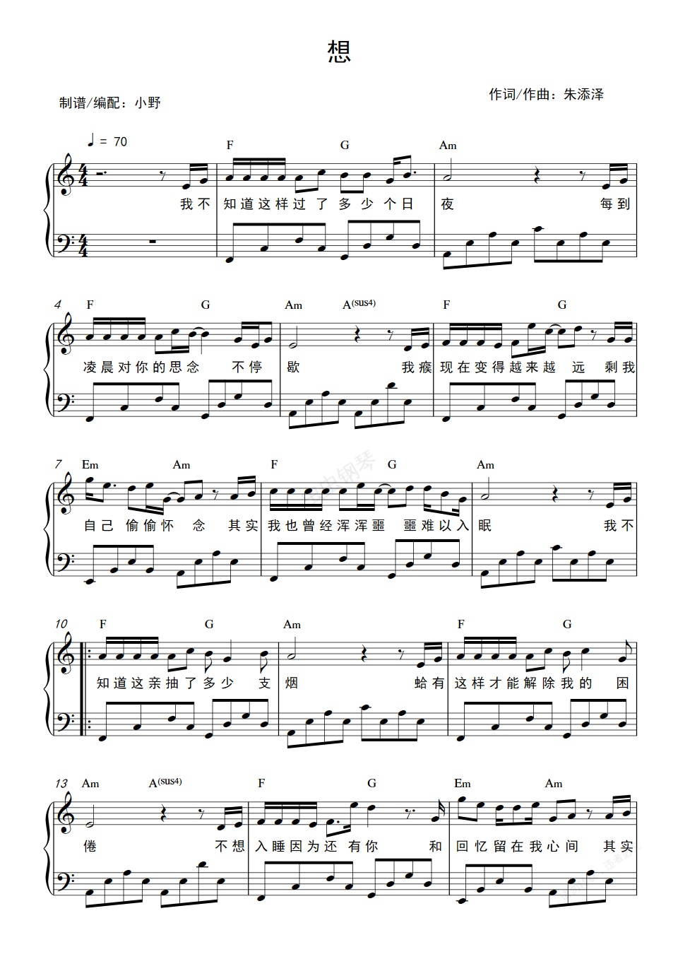 钢琴谱:想