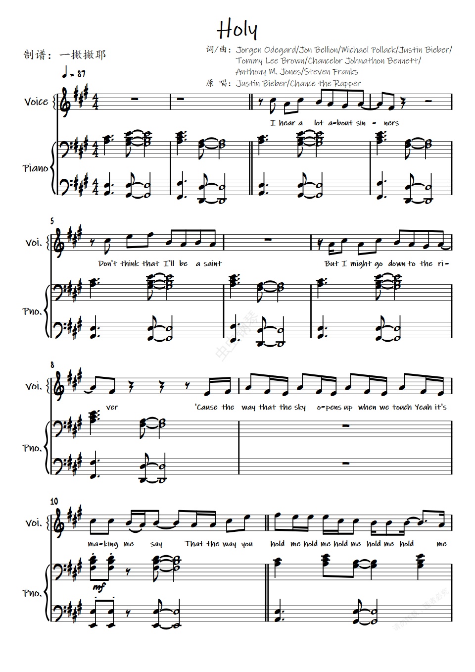 钢琴谱:【女版弹唱】Holy-Justin Bieber 贾斯汀比伯 / Chance the Rapper
