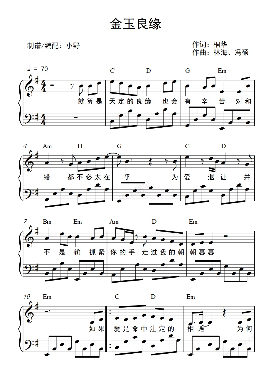 钢琴谱:金玉良缘
