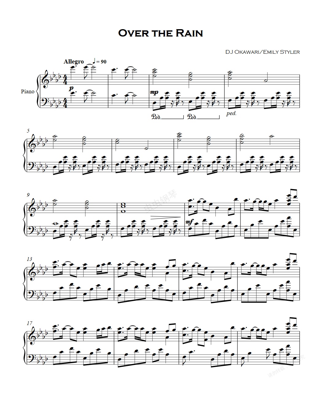 钢琴谱:【DJ OKAWARI】Over the Rain