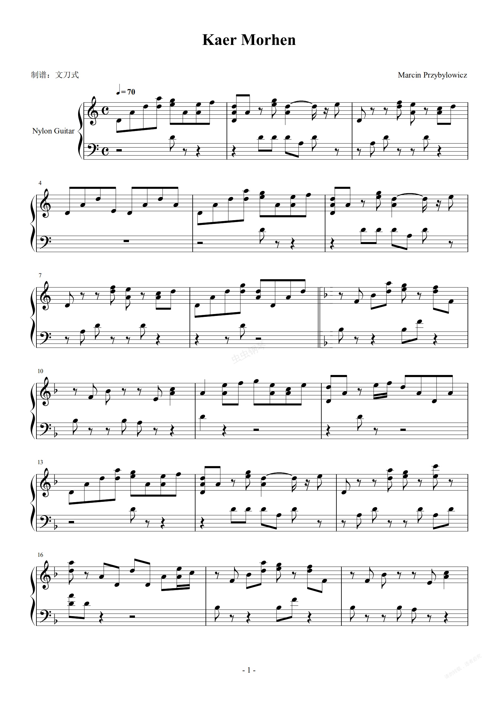 钢琴谱:巫师3《凯尔莫罕》